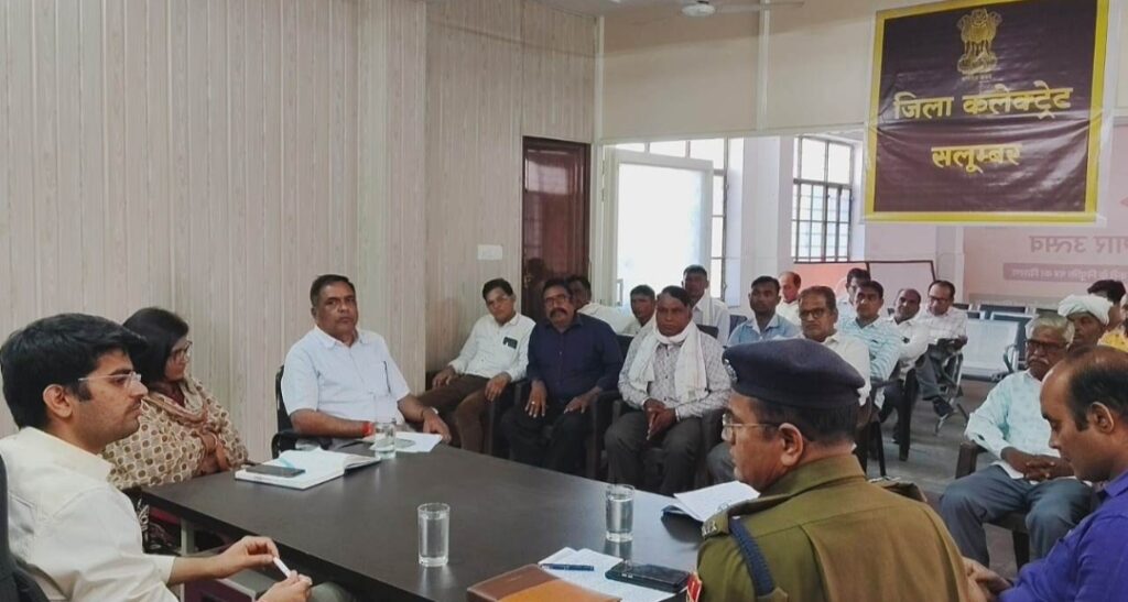 उदयपुर-सलूंबर 06 मार्च। जिले में आगामी त्यौहारों पर शांति एवं कानून व्यवस्था के संबंध में जिला स्तरीय शांति समिति की बैठक जिला कलक्टर अवधेश मीना की अध्यक्षता में गुरुवार को कलेक्ट्रेट परिसर स्थित वीसी कक्ष में आयोजित की गई।