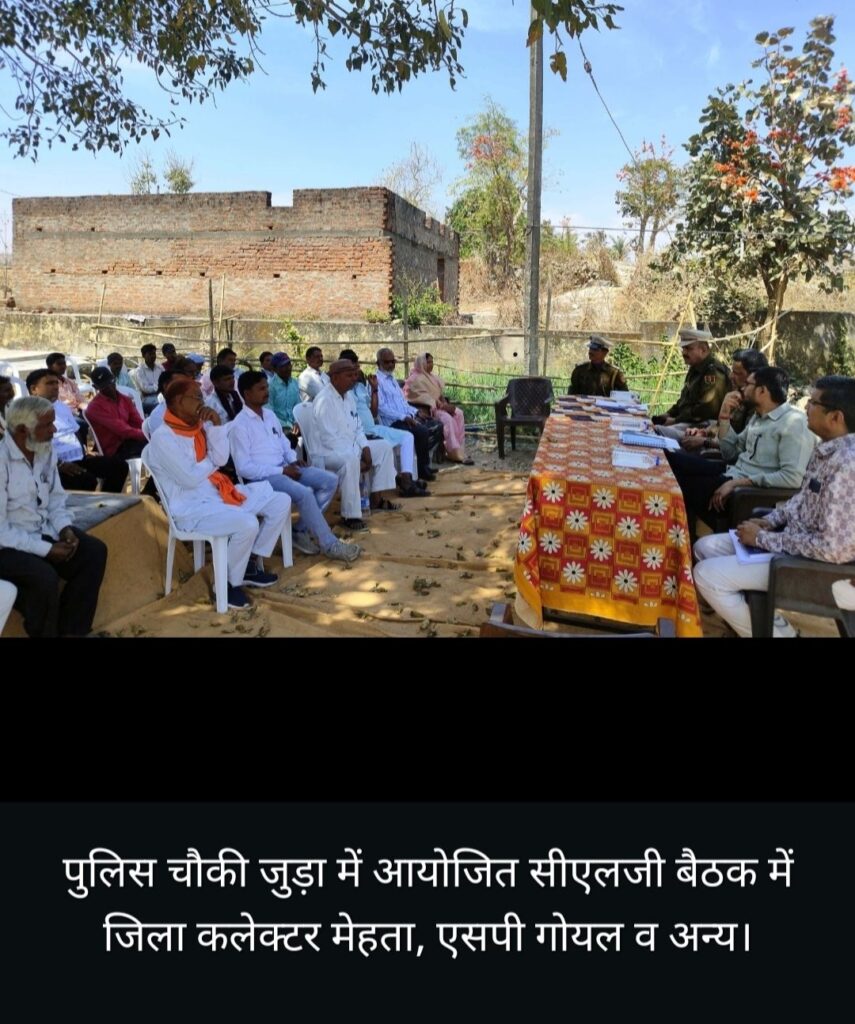 जिला कलक्टर मेहता व एसपी गोयल उदयपुर से सीधे कोटडा उपखंड के अंतर्गत पुलिस थाना मांडवा अंतर्गत पुलिस चौकी जुड़ा में आयोजित सीएलजी बैठक में पहुंचे। उन्होंने सीएलजी सदस्यों को होली पर्व की शुभकामनाएं देते हुए शांतिपूर्ण रूप से त्योहार मनाने के संबंध में चर्चा की। ग्रामीणों ने क्षेत्र में विद्युत समस्या के बारे में कलक्टर को अवगत करवाया। मौके पर ही जिला कलक्टर ने एवीवीएनएल अधिकारियों को समस्या का शीघ्र समाधान करवाने के निर्देश दिए। ग्रामीणों ने कोटडा उपखंड मुख्यालय से उदयपुर हेतु रोडवेज बसें बढ़ाने की भी मांग की गई इस पर भी जिला कलेक्टर ने उचित कार्रवाई का आश्वासन दिया।