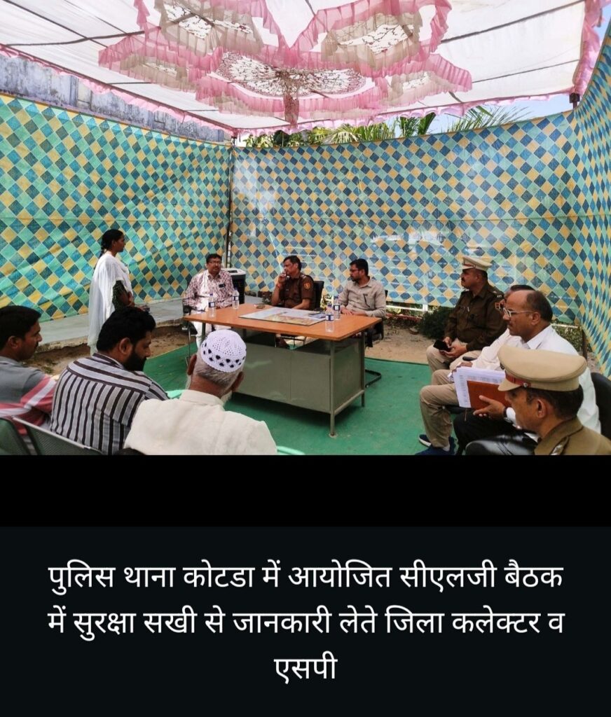 तत्पश्चात जिला कलक्टर व एसपी कोटडा उपखंड मुख्यालय पहुंचे। वहां उन्होंने पुलिस थाना कोटडा में आयोजित सीएलजी बैठक में भाग लिया। उन्होंने सुरक्षा सखियों से चर्चा करते हुए पुलिस को दिए जा रहे सहयोग की जानकारी ली तथा सुरक्षा सखियों में से राजीविका समूहों से जुड़ी महिलाओं द्वारा तैयार किया जा रहे हर्बल गुलाल के बारे में भी जानकारी लेते हुए उनकी हौसला अफजाई की।