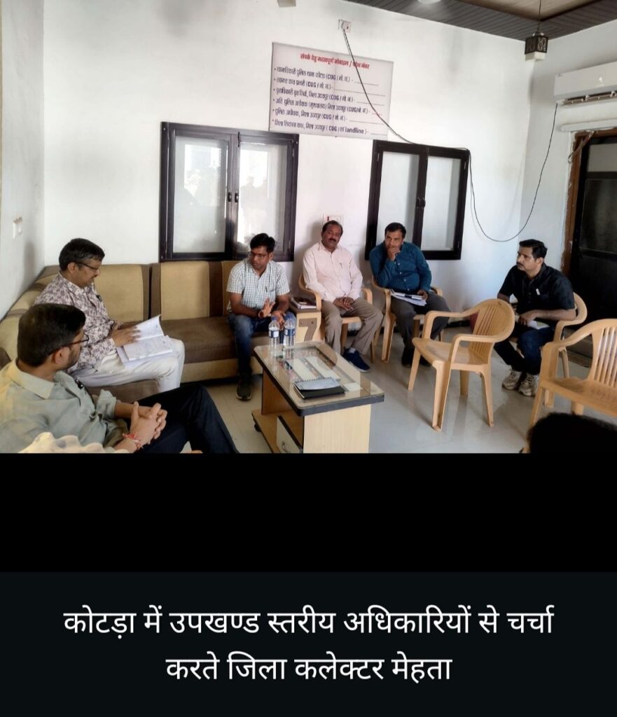 जिला कलक्टर मेहता ने कोटडा उपखंड मुख्यालय पर ब्लॉक स्तरीय अधिकारियों से संबंधित विभाग की योजनाओं की उपखंड में प्रगति जानी तथा आवश्यक निर्देश दिए। उन्होंने एवीवीएनएल के अधिकारियों को क्षेत्र में जीएसएस के लिए आवश्यक जमीन के प्रकरण शीघ्र निस्तारित करने को कहा। कोटडा उप जिला चिकित्सालय में चिकित्सकों की कमी पर जिला कलक्टर ने सीएमएचओ को आवश्यकतानुसार डॉक्टरों को प्रतिनियुक्ति करने के निर्देश दिए। साथ ही उन्होंने रिक्त पटवार हल्को पर शीघ्र पटवारी नियुक्त करने की भी बात कही।