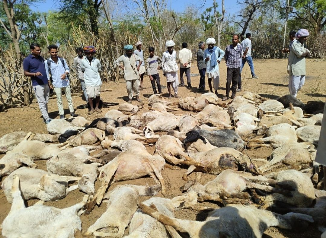 भींडर( कन्हैयालाल मेनारिया बासड़ा)!वल्लभनगर उपखंड क्षेत्र की ग्राम पंचायत गोटिपा के उकेलाई में मंगलवार को बिजली का टूटने के बाद करंट से एक खेत में मौजूद 90 भेड़ों की मौके पर ही मौत हो गई। इसके बाद पंचायत समिति सदस्य रतन सिंह राठौड़ एवं उपसरपंच कुबेर सिंह झाला ने पुलिस व प्रशासन को सूचना दी। जिससे पुलिस प्रशासन ने मौके पर पहुंचकर कार्रवाई शुरू की। इस घटना के बाद नारायण पुत्र दीपा एवं कना पुत्र दीपा ने रिपोर्ट दर्ज करवाई। जिसमें बताया कि 90 भेड़ें बाड़े में से निकालकर बावजी देवरे के पास स्थित खेत में बिठाने के लिए लाए थे। खेत के अंदर सारी भेड़ें पेड़ों की डालियां व पत्ते खा रही थी। इस दौरान देवरे के पास स्थित विद्युत पोल से बिजली का तार गर्म होकर टूट गया। यह बिजली का तार खेत में विचरण कर रही भेड़ों के ऊपर गिर गया। जिससे एक के बाद एक 90 भेड़ें करंट की चपेट में आ गई। करंट का तेज झटका लगने के कारण 90 भेड़ों की मौके पर ही मौत हो गई। भेड़ों की मौत की घटना के बाद सैकड़ों ग्रामीण मौके पर जमा हो गए। वहीं भेड़ मालिकों का रो- रो-रोकर बुरा हाल हो गया। घटना के बाद सीआई दिनेश पाटीदार, एएसआई रमेश डांगी, कान्स्टेबल बाबूलाल, शंकर सिंह, जगमोहन मय पुलिस टीम मौके पर पहुंची। पुलिस ने ग्रामीणों से घटना के बारे में जानकारी ली। सूचना पर पशु चिकित्सकों की टीम भी मौके पर पहुंच गई। पुलिस, ग्रामीण एवं जनप्रतिनिधियों की मौजूदगी में भेड़ों का पोस्टमार्टम किया गया। इसके बाद पंचायत ने सभी भेड़ों का अंतिम संस्कार करवाया गया। इधर पीड़ित की रिपोर्ट पर पुलिस ने अग्रिम कार्रवाई शुरू की !