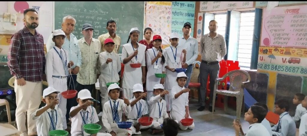 भींडर (कन्हैयालाल मेनारिया बासड़ा)!सामाजिक जन चेतना एवं पर्यावरण बचाओ मिशन प्रभारी शिक्षक अम्बा लाल चौबीसा (सावन) की ओर से महात्मा गांधी इंग्लिश मिडियम स्कूल मदनपुरा भीण्डर के युथ एवं इको क्लब के छात्र छात्राओं को इको केप तथा भीषण गर्मी को देखते हुए पक्षियों के लिए पानी के परिंडे वितरित किए। पर्यावरण मित्र शिक्षक जगदीश मेनारिया के नेतृत्व में छात्र छात्राओं ने पेड़ों पर पक्षियों के लिए परिंडे बांध कर उनको नियमित पानी भरने का संकल्प दिलवाया। इस अवसर पर प्रधानाचार्य जगदीश मेघवाल, नरेश चौबीसा, सीमा सोनी, रामचंद्र सियाग, देव चन्द गंदेर, आदि उपस्थित थे।