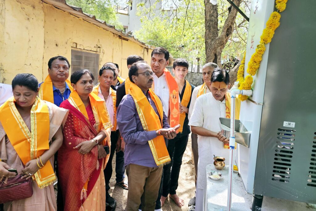 खेरवाड़ा। उदयपुर सांसद डॉक्टर मन्नालाल रावत ने रविवार को कस्बे के आजाद चौक में आम जनता को निशुल्क शीतल पेयजल उपलब्ध कराने हेतु आर ओ वाटर संयंत्र का शुभारंभ किया। समाजसेवी स्वर्गीय पोपटलाल जी कलाल भोमटावाड़ा की स्मृति में भामाशाह एवं संयुक्त व्यापार महासंघ के अध्यक्ष अमित कलाल के सौजन्य से लगाए गए इस आरओ वाटर फिल्टर मशीन से आम जनता को 24 घंटे निशुल्क शीतल पेयजल उपलब्ध होगा । इस अवसर पर सांसद रावत ने भामाशाह अमित कलाल परिवार का आर ओ संयंत्र लगाने हेतु साधुवाद ज्ञापित किया। इस दौरान पुलिस ट्रेनिंग स्कूल खेरवाड़ा के कमांडेंट नरपत सिंह, नगर पालिका अध्यक्ष लक्ष्मी देवी आहारी, व्यापार महासंघ के संरक्षक पारस जैन, महामंत्री चिराग कोठारी, उपाध्यक्ष प्रमोद अग्रवाल, वरिष्ठ व्यवसाय मोतीलाल कलाल, भरत जैन,विमल कोठारी, पोपटलाल कलाल, प्रेमचंद कलाल ,महेश कलाल, देवीलाल कलाल, सुनील राजपुरोहित,आनंद जैन, धनपाल,पंकज जैन, हितार्थ, नीषित बालेश्वर सहित बड़ी संख्या में नगर वासी उपस्थित थे। संचालन पारस जैन ने किया तथा आभार अमित कलाल ने ज्ञापित किया।