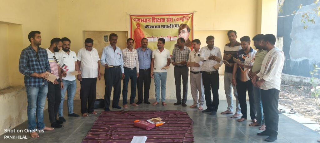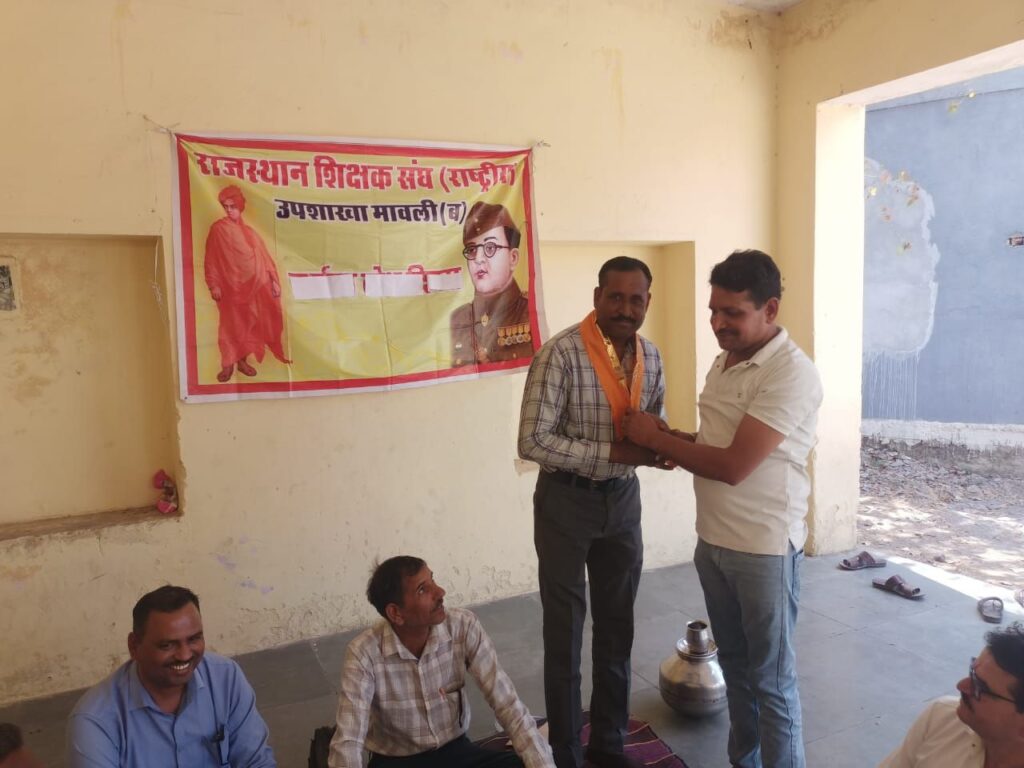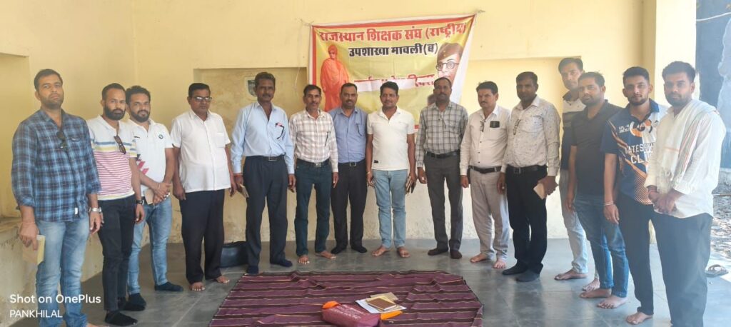मावली (नरेन्द्र त्रिपाठी)!मावली राजस्थान शिक्षक संघ राष्ट्रीय उप शाखा मावली ब मे की मासिक बैठक 27 अप्रैल 2025 रविवार को ख़ेमली स्टेशन के गरियावास कॉलोनी के शिव मंदिर परिसर में उप शाखा अध्यक्ष भीम सिंह राव की अध्यक्षता एवं प्रदेश संगठन द्वारा नियुक्त प्रवासी कार्यकर्ता दीपक कुमार चौबीसा के मुख्य आतिथ्य म में आयोजित की गई। कार्यक्रम में विशिष्ट अतिथि सदस्यता प्रभारी अर्जुन सिंह चुंडावत रहे।उप शाखा मंत्री राजवीर सिंह ने बताया कि बैठक में आगामी शैक्षणिक सत्र 2025- 26 के सदस्यता अभियान, जून माह में आयोजित प्रदेश महासमिति अधिवेशन के कार्य योजना पर चर्चा, शिक्षक भर्ती 2006 एवं 2007-8 में पद स्थापित शिक्षक तथा , प्रबोधक वेतन विसंगति निराकरण करवाने संबंधी चर्चा, शिक्षक भर्ती 2016 में चयनित 2019 एवं 2021 में पद स्थापित शिक्षकों के नोशनल लाभ , तृतीय श्रेणी शिक्षक स्थानांतरण आंदोलन एवं विद्यालय सहायकों के नियमितीकरण से संबंधित मुद्दों पर विस्तृत चर्चा की गई। बैठक में उप शाखा क्षेत्र के सभी ग्राम पंचायत में संकुल प्रभारी संकुल संयोजक सह संयोजक एवं महिला संयोजक नियुक्त कर सदस्यता अभियान निश्चित अवधि में पूर्ण करने पर बोल दिया गया। बैठक में उप शाखा कोषाध्यक्ष धर्मेंद्र कुमार तेली, वरिष्ठ उपाध्यक्ष मुकेश कुमार पालीवाल, जिला महासमिति सदस्य पंखीलाल मीणा, कल्याण सिंह देवड़ा, विजय सिंह राव, संजय कुमार दर्जी, लक्ष्मी लाल गायरी, श्यामलाल प्रजापत, अजय जोशी, चंद्रेश पुरबिया, त्रिलोक कुमार वर्मा, राकेश बेरवाल सहित अन्य शिक्षक एवं संगठन पदाधिकारी उपस्थित रहे। कार्यक्रम का संचालन उप शाखा मंत्री राजवीर सिंह द्वारा किया गया।