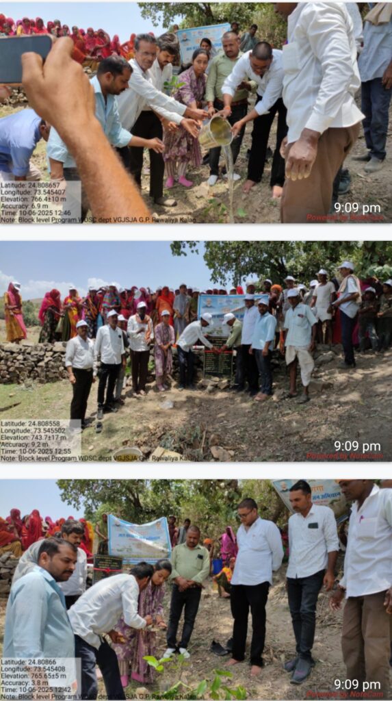 गोगुन्दा 10 जून 2025, कांतिलाल मांडोत! वंदे गंगा जल सरंक्षण जल अभियान के अंतर्गत रावलिया कला में जल ग्रहण विकास एवं भू सरंक्षण के अंतर्गत ब्लॉक स्तरीय कार्यक्रम का आयोजन किया गया।उपरोक्त कार्यक्रम में बढ़चढ़ कर हिस्सा लिया।कार्यक्रम में विशिष्ट अतिथि के रूप में गोगुन्दा उपप्रधान लक्ष्मण सिंह झाला पूर्व उप प्रधान पपु राणा गमेती गोगुंदा मंडल अध्यक्ष निखिल कोठारी नादेशमा मंडल उपाध्यक्ष अर्जुन सुथार सरपंच लीला देवी गमेती समाजसेवी देवी सिंह सिसोदिया रावलिया खुर्द और सहायक अभियंता दिव्या सारंगदेवत उपस्थित रहे।