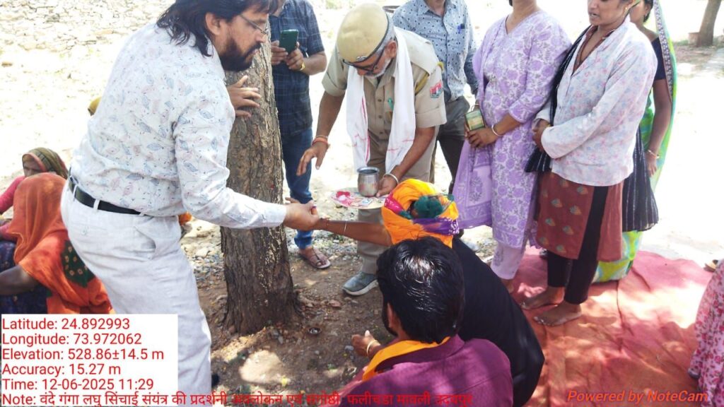 मावली (नरेन्द्र त्रिपाठी)12 जून 2025 !राज्य सरकार की महती योजना वंदे गंगा जल संरक्षण जन अभियान के तहत 12 जून को ग्राम पंचायत फलीचड़ा में रमेश सीरवी पुनाडिया उपखंड अधिकारी के निर्देशन में प्रगतिशील किसान विचार संगोष्ठी किया गया! इस अवसर पर वंदे गंगा संयोजक विधानसभा क्षेत्र भारतीय जनता पार्टी सुनील डांगी, नायब तहसीलदार प्रवीण मीणा, परसराम जाट इवेंट नोडल अधिकारी, ब्लॉक कोऑर्डिनेटर जगदीश चंद्र पालीवाल, सहायक विकास अधिकारी कैलाश सुथार व हरि सिंह राव वनपाल सुरेश शर्मा, छोगा लाल जाट जनप्रतिनिधि, विकास शर्मा राज्य विकास समूह एवं अन्य ब्लॉक स्तरीय विभागों के अधिकारी गण उपस्थित थे! अतिथियों के द्वारा औषधीय पौधा नीम का पूजन राजीविका महिला समूह के गीतों के साथ किया गया ! प्रगतिशील किसान कार्यशाला मे विभिन्न किसान समृद्धि योजना की जानकारी दी गई! जल के अपव्यय एवं बर्बादी को रोकने पर जोर दिया गया! कृषि विभाग द्वारा लगाई गई प्रदर्शनी का अवलोकन किया गया!