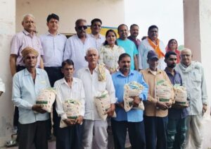 खैरवाड़ा । किसानों को मक्का बीज वितरित करते अतिथि। फोटो धरणेन्द्र जैन