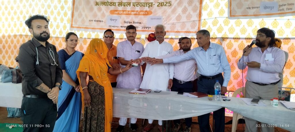 मावली (नरेन्द्र त्रिपाठी)2 जुलाई2025! राज्य सरकार के निर्देशानुसार उपखंड मावली में पंडित दीनदयाल उपाध्याय अंत्योदय संबल पखवाड़े के तहत उपखंड अधिकारी रमेश सीरवी पुनाडिया के निर्देशन में ग्राम पंचायत खेमपुर में सम्बल शिविर आयोजित किया गया !