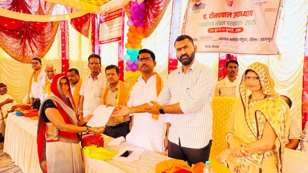 खैरवाड़ा (धरणेन्द्र जैन)। भाजपा उदयपुर देहात जिलाध्यक्ष पुष्कर तेली ने पंडित दीनदयाल उपाध्याय अंत्योदय संबल पखवाड़े के अंतर्गत गोगुंदा पंचायत समिति की ग्राम पंचायत चाटिया खेड़ी में शिविर का अवलोकन कर आम जन से संवाद किया ,विभिन्न विभागों द्वारा आम जन के आवेदनों,प्रकरणों के निस्तारण की प्रक्रिया की जानकारी ली एवं केंद्र एवं राज्य सरकार की लोककल्याणीकारी योजनाओं की भी जानकारी दी।
