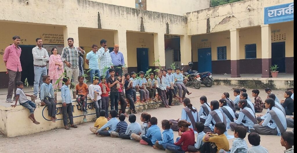 मावली(नरेन्द्र त्रिपाठी)!मावली क्षेत्र के ग्राम पंचायत फली चढ़ा राजकीय उच्च माध्यमिक विद्यालय में वृक्षारोपण कार्यक्रम को लेकर सैकड़ो पौधारोपण कार्य विद्यालय परिवार द्वारा किया गया जिसमें कार्यवाहक प्रधानाचार्य राहुल नुवाल ने बताया की पीयो के अधीनस्थ सभी विद्यालयों में सैकड़ो वृक्षारोपण कार्य किया गया जिसमें प्रदेश शिक्षक नेता सुरेश कुमार देशबंधु ने पेड़ पौधों से होने वाले लाभ पर्यावरण संबंधित लाभ की जानकारी देते हुए प्रत्येक बालक बालिकाएं अपने विद्यालय खेत घर आंगन में एक पौधा अवश्य लगाकर उसकी देखरेख कर बड़ा करना चाहिए लहरी लाल जाट अध्यापक द्वारा हरियालो राजस्थान को लेकर अधिक से अधिक पेड़ पौधे लगाने चाहिए सुनील अटल ने कहा कि वृक्षारोपण की ऑनलाइन सूचना की जानकारी दी गई इस दौरान कार्यवाहक प्रधानाचार्य राहुल नुवाल शिक्षक नेता सुरेश कुमार देशबंधु उदय लाल सालवी फतेहलाल यादव देवीलाल जाट सुनीता मीणा लीला खटीक लहरी लाल जाट जोली चौधरी महेश चंद्र लूनिया प्रीति कौर रक्षा काजल श्रीमाली कालू सिंह राजपूत राजेश सालवी सुनील अटल समस्त बालक बालिकाएं विद्यालय परिवार उपस्थित रहा !
