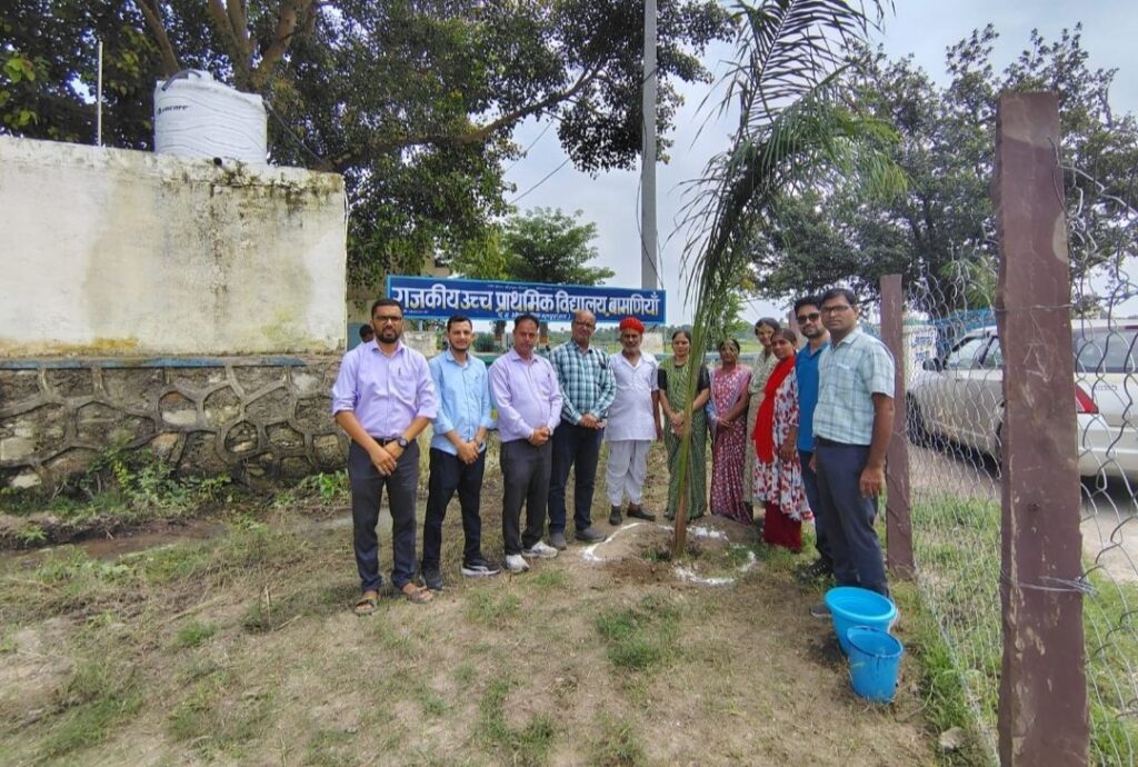 भींडर (कन्हैयालाल मेनारिया बासड़ा)!राजस्थान सरकार के द्वारा संचालित हरित राजस्थान कार्यक्रम के अंतर्गत राजकीय उच्च प्राथमिक विद्यालय बामणिया परिसर को हरा-भरा बनाने और विद्यार्थियों में पर्यावरण के प्रति अलख जगाने की सोच को लेकर विद्यालय स्टॉफ द्वारा 2100 रुपए की दर से 10 पौधे (बोटल पाम- 15 फीट ) व तारबंदी कर बाल वाटिका का निर्माण किया गया । स्थानीय विद्यालय के प्रधानाध्यापक विजयलाल मेनारिया ने बताया कि इससे ग्रामीणों व बच्चों में पर्यावरण के प्रति एक सकारात्मक सोच का निर्माण होगा ।
