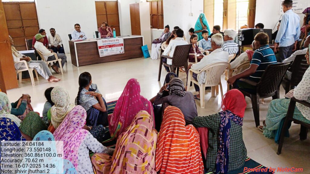 खैरवाड़ा (धरणेन्द्र जैन)। वित्तीय समावेशन एवं सामाजिक सुरक्षा योजनाओं के सशक्त क्रियान्वयन हेतु दिनांक 1 जुलाई से 30 सितंबर 25 तक एक देशव्यापी विशेष अभियान संचालित किया जा रहा है। इस योजना के अंतर्गत प्रधानमंत्री जनधन योजना के बंद पड़े खातों की री केवाईसी एवं साथ ही प्रधानमंत्री जीवन ज्योति बीमा योजना, प्रधानमंत्री सुरक्षा बीमा योजना और अटल पेंशन योजना का आधिकारिक नामांकन किया जाना है। इसके लिए ग्राम पंचायत स्तर पर कैंप के आयोजन किया जा रहे हैं। ग्राम पंचायत झूथरी में आज कैंप का आयोजन किया गया, जिसमें बैंक बीसी अशोक द्वारा उपरोक्त कार्य किया और वित्तीय साक्षरता केंद्र के प्रभारी शंकर सिंह राजपूत द्वारा सभी योजनाओं की विस्तृत जानकारी आमजन को दी गई। ग्राम पंचायत की ग्राम विकास अधिकारी हितेश जोशी ने ग्राम पंचायत के लोगों को उपयुक्त योजनाओं के कार्य कैंप में होने की जानकारी दी जिससे लोग कैंप में आए और योजनाओं को लाभ लिया। उक्त कैंप का आज संयुक्त निदेशक आर्थिक एवं सांख्यिकी उदयपुर पुनीत शर्मा एवं ब्लॉक सांख्यिकी के अधिकारी नारायण लाल पटेल द्वारा निरीक्षण किया गया । कैंप के निरीक्षण के दौरान उपरोक्त योजनाओं की जानकारी आमजन को दी गई और साथ ही ग्राम पंचायत के जन्म मृत्यु एवं विवाह रजिस्ट्रेशन का भी निरीक्षण किया गया उसमें पाई गई कमियों पर सुधार हेतु निर्देशित किया।