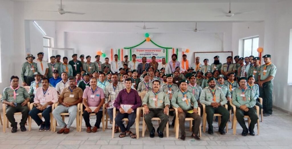 उदयपुर, (कन्हैयालाल मेनारिया बासड़ा) 18 जुलाई । हिंदुस्तान स्काउट एंड गाइड राजस्थान राज्य के राज्य मुख्यालय उदयपुर के तत्वधान में उदयपुर के कलड़वास स्थित सरस्वती नर्सिंग कॉलेज में चल रहे पांच दिवसीय राज्य स्तरीय ब्लॉक सचिव एवं बेज निरीक्षक प्रशिक्षण शिविर का समापन आज शुक्रवार को सर्व धर्म प्रार्थना के साथ सम्पन्न हुआ। शिविर में प्रदेश के 24 जिलो के 80 ब्लॉक सचिवो( सभी राजकीय सेवारत शिक्षक )ने प्रशिक्षण प्राप्त किया। जिसमें ब्लॉक सचिव के रूप में कार्य कर रहे शिक्षा विभाग के व्याख्याता,वरिष्ठ अध्यापक , शिक्षक शारीरिक शिक्षक एवं कंप्यूटर शिक्षक थे।आज शुक्रवार को प्रातः 7:30 बजे आयोजित सर्व धर्म प्रार्थना का आयोजन किया गया। जिसमें अलग अलग प्रतिभागियों द्वारा अपने अपने धर्मों की प्रार्थना बोली । इसके बाद पांच दिन तक साथ रहे शिक्षकों ने एक दूसरे को गले लगाकर विदाई ली । राज्य संगठन आयुक्त रिपुदमन गिल ने बताया कि शिविर के दौरान ब्लॉक कार्यकारिणी का गठन, ब्लॉक सचिव के कर्तव्य और उत्तर दायित्व, ब्लॉक परिषद का वार्षिक अधिवेशन, स्काउट गाइड की योग्यता अभिवृद्धि ,स्काउट्स एंड गाइडस आंदोलन की विचार दृष्टि, आंदोलन का ध्येय, स्काउट गाइड पद्धति, स्काउटिंग क्या है, स्काउटिंग क्यों, स्काउट गाइड के नियम, आदर्श वाक्य , का प्रशिक्षण दिया गया। शिविर के दौरान ही तीसरे दिन अतिथि सम्मान समारोह का आयोजन भी किया गया। जिसमें शिविर हेतु निशुल्क कॉलेज भवन उपलब्ध करवाने के लिए स्काउट के पदाधिकारियों एवम अन्य अतिथियों के हाथों सरस्वती नर्सिंग कॉलेज के प्रबंधन निदेशक व कल्डवास चेंबर ऑफ इंडस्ट्रीज के अध्यक्ष गिरीश शर्मा का अभिनंदन पत्र ,पाग,स्मृति चिह्न भेंट कर सम्मान किया गया।