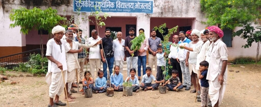 मावली (नरेन्द्र त्रिपाठी)!मावली क्षेत्र के ग्राम पंचायत फलीचढ़ा के राजकीय उच्च माध्यमिक विद्यालय के अधीनस्थ राजकीय उच्च प्राथमिक विद्यालय भोजलाई में एक पेड़ मां के नाम हरियालो राजस्थान कार्यक्रम के तहत वन एवं अमृत पर्यावरण महोत्सव अभियान के तहत एक पेड़ मां के नाम उपलक्ष में वृक्षारोपण कार्यक्रम को संपन्न किया गया जिसमें वृक्षारोपण में फलदार एवं छायादार पौधे लगाए गए कार्यक्रम के दौरान वन एवं पर्यावरण अभियान कार्यक्रम में भाजपा मावली मंडल संयोजक सोहनलाल गाडरी भाजपा उपाध्यक्ष मंडल मावली छोगालाल जाट भाजपा पूर्व वरिष्ठ उपाध्यक्ष घनश्याम नाथ चौहान रोशन गुर्जर रतन सिंह राणावत जोरावर सिंह राणावत चुन्नीलाल जाट विद्यालय के कार्यवाहक राहुल कुमार नूवाल प्रेम कुमारी व्यास घनश्याम मेघवाल राजेश सालवी प्रेम सिंह राजपूत गहरी लाल जाट समस्त कर्मचारी एवं अधिकारी गण बालक बालिकाएं जनप्रतिनिधि उपस्थित रहे सूचना प्रदेश शिक्षक नेता सुरेश कुमार देशबंधु द्वारा दी गई!