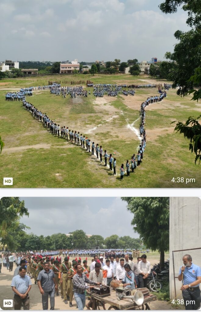 रैली से पूर्व भैरव स्कुल के मैदान में भारत का विशाल मानव नक्शा छात्र छात्राओ द्वारा बनाया गया. हर घर तिरंगा की थीम दर्शाकर कतारबद्ध छात्रो ने भारत की रंग बिरंगी सीमाए प्रदर्शित करते हुए भारत की छवि विविध रंगों एवं फून से भरे गुलदस्ते के समान बनाकर प्रस्तुत की.
