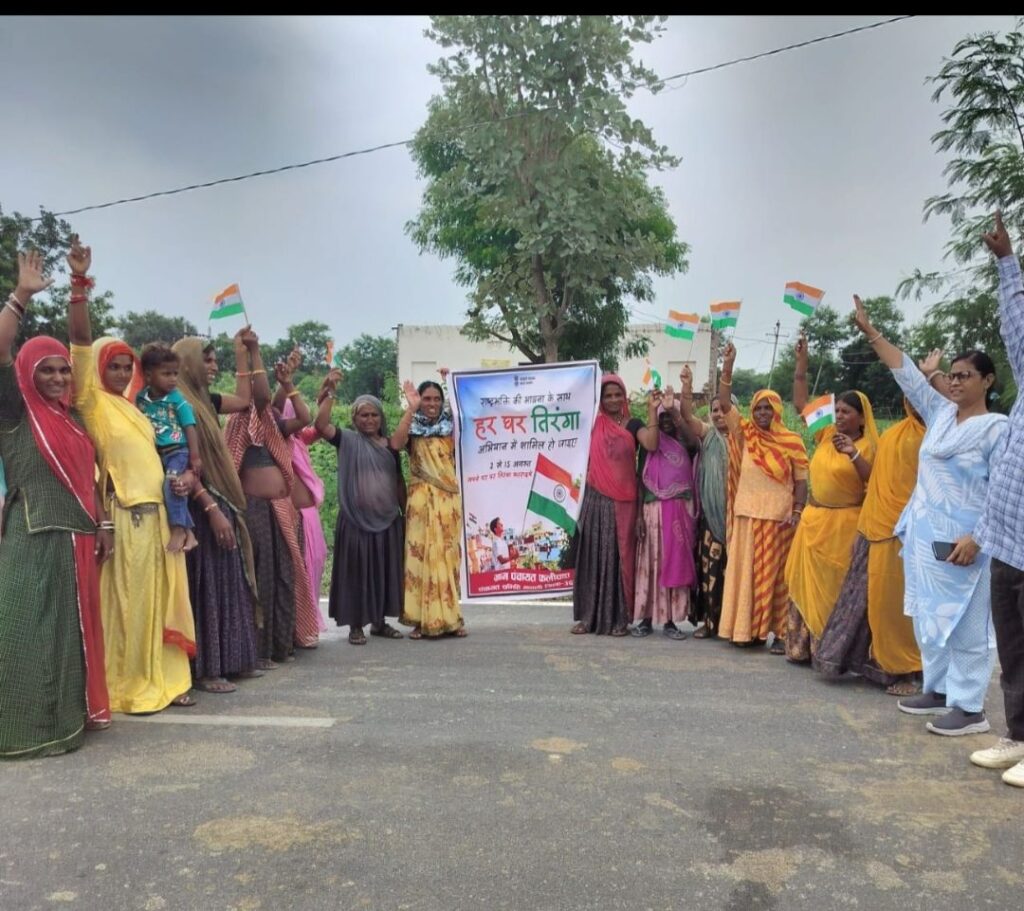 मावली( नरेन्द्र त्रिपाठी)!मावली क्षेत्र के ग्राम पंचायत फलीचढ़ा में हर घर तिरंगा लहराए अभियान कार्यक्रम में सरपंच श्री मति मीना देवी जाट समाजसेवीश्री छोगालाल जाट द्वारा हरी झंडी दिखाकर रैली का आयोजन वन विभाग से मुख्य सड़क तक आस पास की बस्ती के ग्रामीणों को घर-घर तिरंगा लगाने का कहा गया रैली में शिक्षक नेता सुरेश कुमार देशबंधु द्वारा नारों बोलते हुए कहा कि हमारे प्रत्येक परिवार को घर से भारतीय ध्वज लहराने के लिए प्रोत्साहित करते हुए एकता, देशभक्ति, राष्ट्रीय ,गौरव की भावना को बढ़ावा देना है और प्रत्येक घर पर तिरंगा फहराया जाए इस दौरान ग्राम पंचायत कर्मचारी शशि जीनगर ,लोकेश टांक, महादेव टेलर, वर्दी चंद्र जाट मंजु,बदामी, कनी, शांता , आदि महिला,पुरुष सम्मिलित हुए l