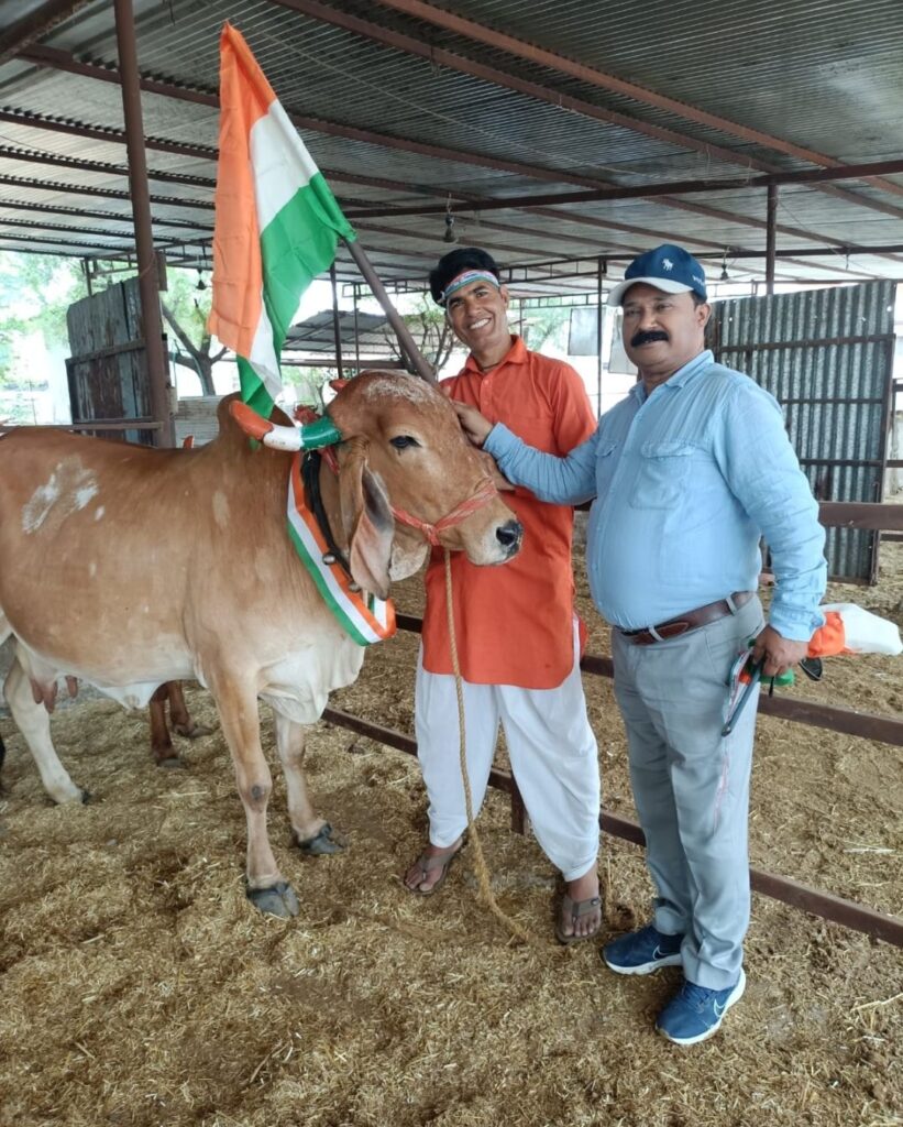 भींडर (कन्हैयालाल मेनारिया बासड़ा)!भींडर उपखंड क्षेत्र अंतर्गत संचालित श्री नागेश्वर पार्श्वनाथ गौशाला बांसड़ा में पशुपालन विभाग एवं गौशाला प्रबंधन ने मिलकर तिरंगा महोत्सव मनाया। प्राणी मित्र श्याम चौबीसा संचालक व डॉ अनिल काले वरिष्ठ पशु चिकित्साधिकारी खेरोदा एवम प्रभारी गौशाला ने बताया कि रमेश चंद्र बहेड़िया उप जिला कलेक्टर भिंडर के द्वारा दिए गए निर्देश अनुसार गोवंश के सिंग को तिरंगा में रंगा गया , तिरंगे दुपट्टे एवं तिरंगे ध्वज से सजाकर गौ माता की पूजन कर गुड़ खिलाया गया। इस अवसर पर पशु धन सहायक अभय सिंह राठौड़ कुंडई मुरलीधर रोलानिया अमरपुरा,राजेंद्र चौधरी बांसडा अरविंद सिंह खेरोदा कपिल चौबीसा एवं ग्वाल राधेश्याम शर्मा आदि ने सहभागिता निभाई!