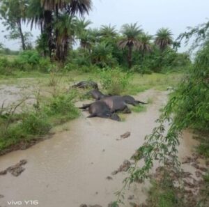 मावली ,(कन्हैयालाल मेनारिया बासड़ा),30 अगस्त ! ढुढीया गाँव में दोपहर 12 :15 Pm पर गाँव की चारागाह भूमि पृथ्वीराज गाडरी पिता नारायण लाल गाडरी भैंस चाराने गये ढुढीया तलाब की ओर वहाँ पर लगी ट्रांसफॉर्मर डीपी लाइट फाल्ड होने की वजह से 6 भैंसों को 11हजार kv करंट लग गया और मोके पर ही 6 भैंसों की मौत हो गई और भैंस चरा रहे पृथ्वीराज को भी करंट का झटका लगा जिससे वो दुर भाग गए और देखा कि भैंसों को करंट लग रहा है और भैंसे तड़प तड़प कर मर गई उन्होंने तुरंत पावरहाउस में सुचना दी और लाइट बंद करवाई विद्युत विभाग की लापरवाही से ग़रीब किसान परिवार की 6 मुरा भैंसें मर गई जिससे पुरा परिवार में मातम छा गया विद्युत विभाग को मेटीनेस करना था परन्तु विभाग ने लापरवाही बरती पिछले 2 दिन पुर्व ढुढीया माताजी मन्दिर के पास एक गाय को करंट लग गया जिससे उसकी मृत्यु हो गई ग्रामीणों ने मावली विधायक प्रत्याक्षी रहे कृष्ण गोपाल जी पालीवाल को सुचना दी और वे तुरन्त मौक़े पर आए और मावली उपखण्ड अधिकारी से बात कर उन्होंने पुलिस प्रशासन को मौक़े पर भेजा और कार्यवाही करी व डोक्टर द्वारा पोस्टमार्टम किया गया व ढुढीया पटवारी द्वारा मौका निरीक्षण रिपोर्ट कर उपखण्ड अधिकारी को अवगत कराया गया ग्रामीणों ने विरोध प्रदर्शन किया हर बार लाईट फाल्ड होने की वजह से बार बार दुर्घटना होती है गाँव वालों ने कृष्ण गोपाल जी पालीवाल से नया पावरहाउस ढुढीया में खोलने की माँग रखी!