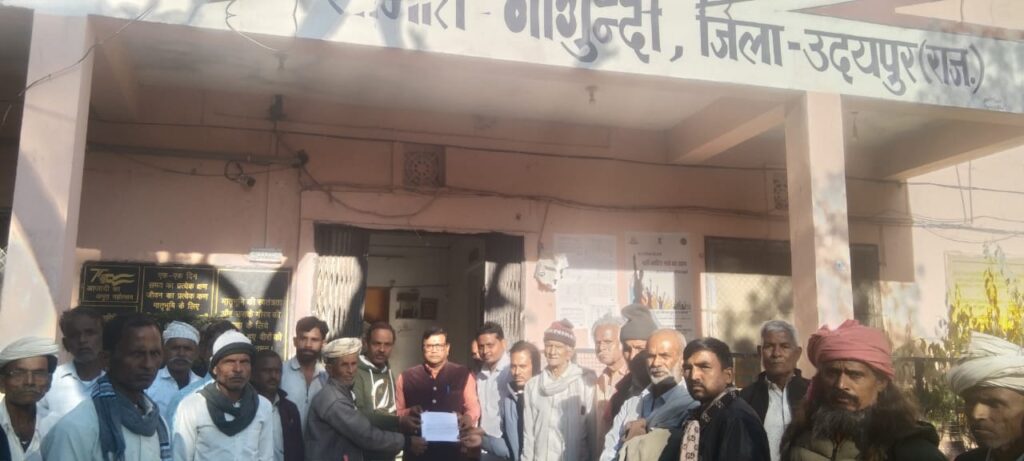 उदयपुर,(कांतिलाल मांडोत) !गोगुन्दा उपखंड क्षेत्र के समिजा, वीरपुरा और वास गांवों के ग्रामीणों ने बुधवार को उदयपुर जिला कलेक्टर तथा गोगुन्दा उपखंड अधिकारी को ज्ञापन सौंपकर राजस्व नक्से में की गई कथित गलत तरमीन और उसके चलते चारागाह, प्राकृतिक धरोहर एवं जलस्रोतों को हो रहे नुकसान पर गंभीर चिंता जताई। ग्रामीणों ने मांग की कि अतिक्रमण हटाकर दोषियों के खिलाफ सख्त कार्रवाई की जाए, ताकि क्षेत्र की ऐतिहासिक और पर्यावरणीय विरासत को बचाया जा सके।