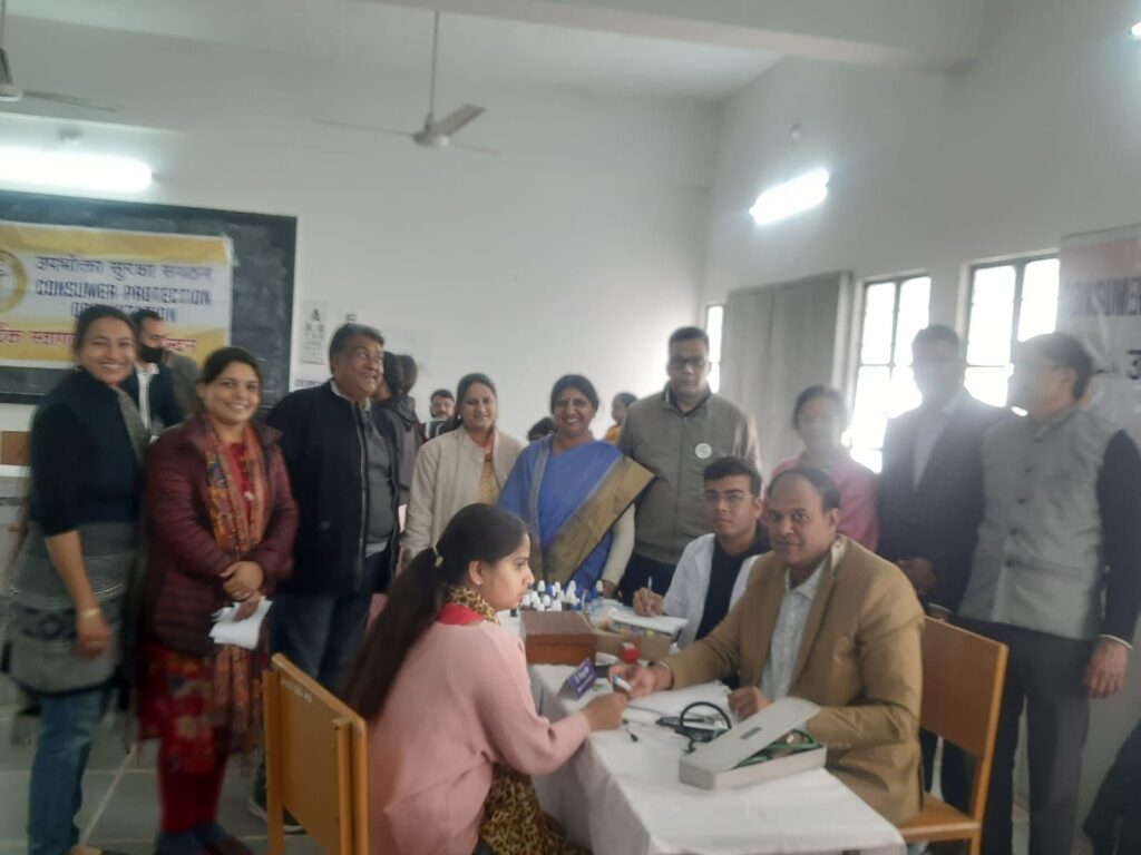 उदयपुर, (नरेन्द्र त्रिपाठी),दिनांक 13 जनवरी ! उपभोक्ता सुरक्षा संगठन के तत्वावधान में राष्ट्रीय युवा दिवस सप्ताह के उपलक्ष में एक दिवसीय निःशुल्क चिकित्सा शिविर गुरु नानक गर्ल्स पी.जी. कॉलेज में हुआ |इस शिविर में लगभग 800 से अधिक छात्र छात्रों ने अपना स्वास्थ्य परिक्षण करवाया |शिविर में एलोपैथिक ,होमेओपेथिक,एक्यूप्रेशर एवं आँखों की निशुल्क जाँच की गयी |