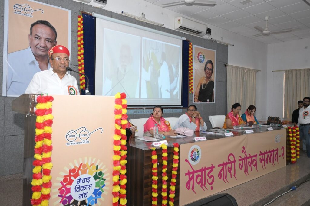 उदयपुर दिनांक 23 मार्च 2026 |मेवाड़ विकास मंच एवं स्वच्छ राजस्थान अभियान के संयुक्त तत्वावधान में “मेवाड़ नारी गौरव सम्मान-2 सम्मान समारोह आयोजित बप्पा रावल सभागार, मोहन लाल सुखाड़िया विश्वविद्यालय मे आयोजित हुआ | कार्यक्रम में 111 महिलाओ का सम्मान किया गया जिन्होंने विभिन्न जैसे शिक्षा, चिकित्सा, उधमीता, वकालत, सामाजिक,मीडिया,इनफार्मेशन टेक्नोलॉजी आदि क्षेत्रों में अपना अमूल्य योगदान दिया |