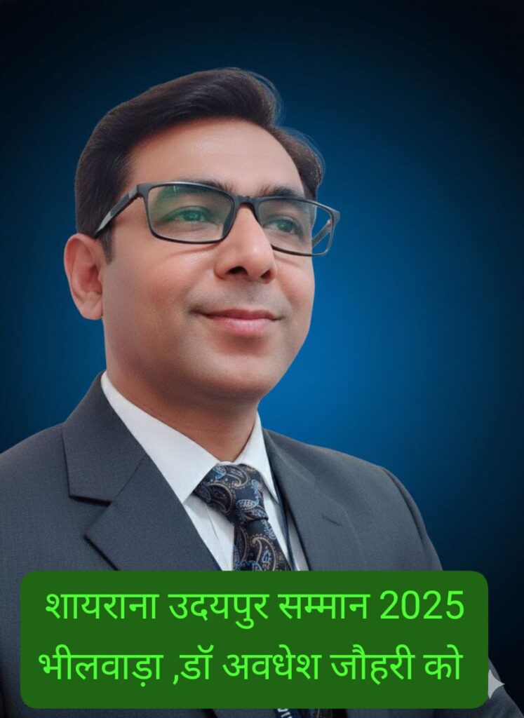 उदयपुर/भीलवाड़ा। जब शब्द साधना बन जाते हैं और कविता किसी का जीवन दर्शन, तब जन्म होता है एक ऐसी शख़्सियत का जो महफ़िलों की रौनक भी है और अकादमिक जगत का स्तंभ भी। भीलवाड़ा के प्रख्यात साहित्यकार, शिक्षाविद और गज़लकार डॉ. अवधेश कुमार जौहरी को आगामी 8 अप्रैल को ‘शायराना उदयपुर सम्मान 2025’ से नवाज़ा जाएगा। यह सम्मान महज़ एक प्रशस्ति पत्र नहीं, बल्कि उस अनवरत तपस्या की स्वीकृति है जो डॉ. जौहरी ने हिंदी साहित्य की सेवा में अर्पित की है।