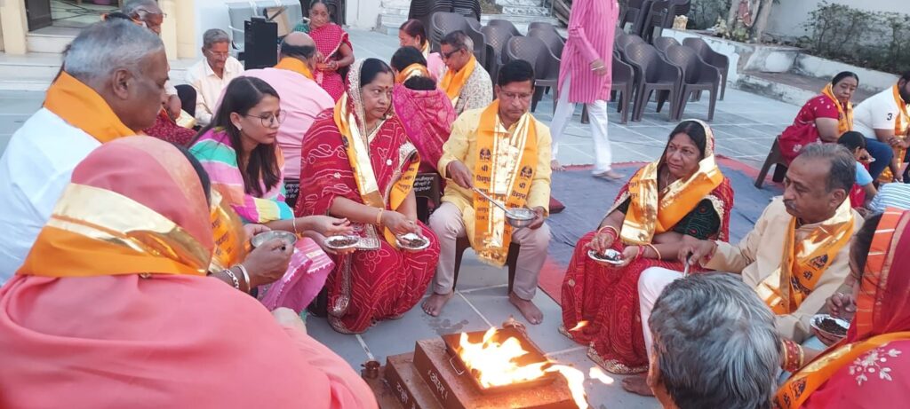 पंचकुण्डीय यज्ञ में समाज के भानु -उमा ,भवानी प्रकाश – शशि, दिनेश -ममता, महेन्द्र- नीलिमा, नवीन -जया, यशवंत -सुधा, तिलकेश -सुधा , पियूष – रश्मि, सुरेश – उषा , करनेश -रेखा, चंद्रमोहन – संगीता, रघुनाथ दत्त -रीना,अनुवाक, खुशी, विकास, शीला, ओमप्रकाश – लता,अरुण -योगिता, रविन्द्र -सुनीता, शक्ति नारायण, नरेन्द्र -रेखा,संजय -सुधा,अरविन्द आदि सदस्यों ने यज्ञ में आहुति देकर धार्मिक आस्था का लाभ लिया ।यज्ञ को विधि पूर्वक संपन्न करने में नरेन्द्र प्रसाद माथुर एवं समिति का विशेष सहयोग रहा |