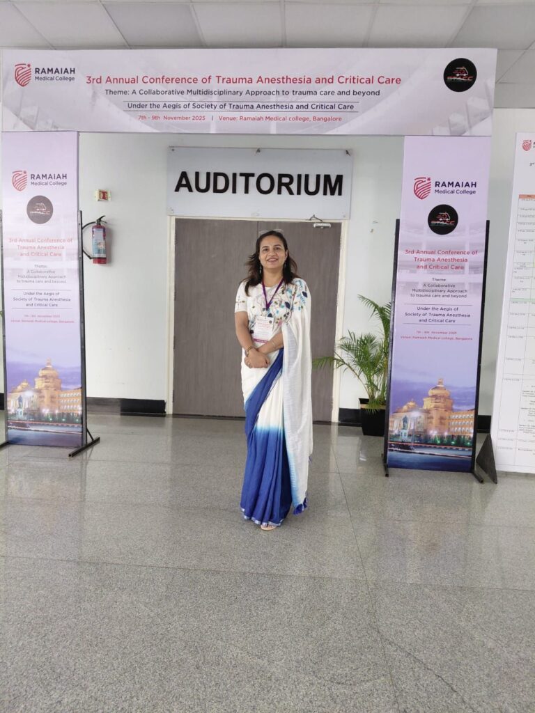 उदयपुर। गीतांजली मेडिकल कॉलेज एंड हॉस्पिटल, उदयपुर की डॉ. सविता चौधरी, प्रोफेसर एवं विभागाध्यक्ष – इमरजेंसी मेडिसिन, ने हाल ही में बेंगलुरु स्थित रामैया मेडिकल कॉलेज में आयोजित ट्रॉमा एनेस्थीसिया एंड क्रिटिकल केयर के वार्षिक सम्मेलन में दो महत्वपूर्ण व्याख्यान प्रस्तुत किए।