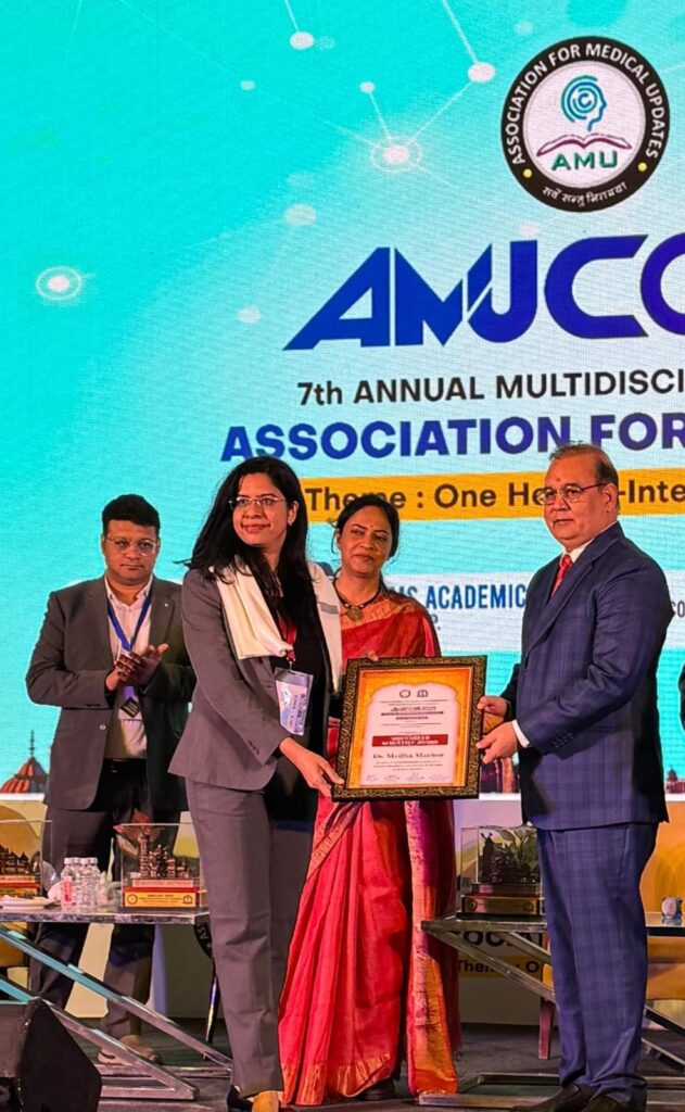 उदयपुर! गीतांजलि मेडिकल कॉलेज एवं हॉस्पिटल, उदयपुर के सामुदायिक चिकित्सा विभाग की प्रोफेसर डॉ. मेधा माथुर को लखनऊ में आयोजित AMUCON 2025 में प्रतिष्ठित मिड-करियर साइंटिस्ट अवॉर्ड से सम्मानित किया गया।