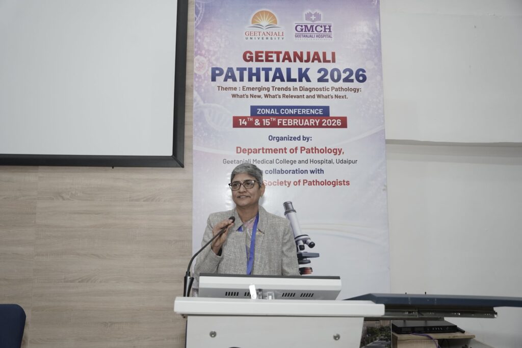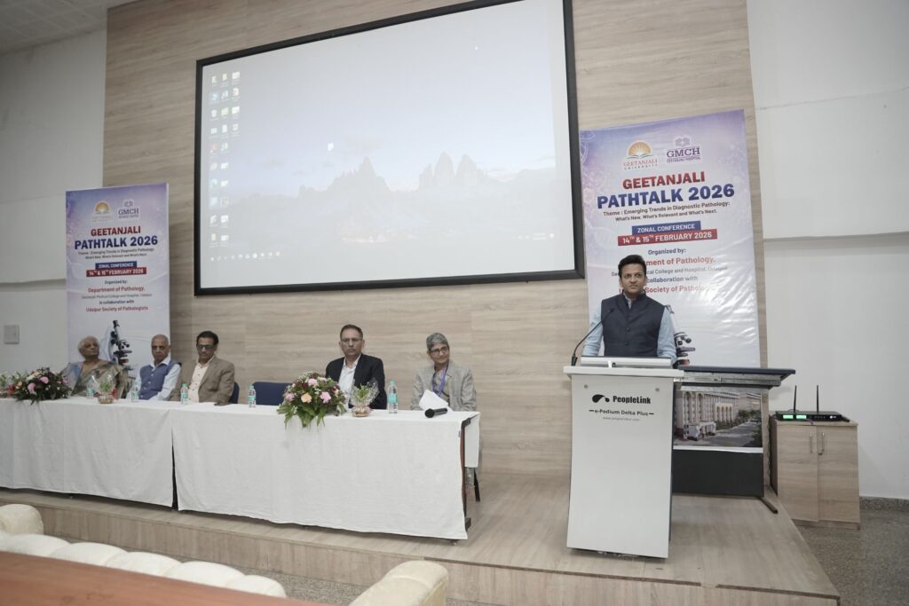 उदयपुर,(नरेन्द्र त्रिपाठी)। गीतांजली मेडिकल कॉलेज एंड हॉस्पिटल, उदयपुर के पैथोलॉजी विभाग द्वारा उदयपुर सोसायटी ऑफ पैथोलॉजिस्ट्स के सहयोग से 14 व 15 फरवरी को दो दिवसीय “गीतांजली पैथटॉक 2026” जोनल कॉन्फ्रेंस का सफल आयोजन किया गया। इस वर्ष सम्मेलन की थीम “डायग्नोस्टिक पैथोलॉजी में उभरते रुझान: क्या नया है, क्या प्रासंगिक है और आगे क्या” रही।