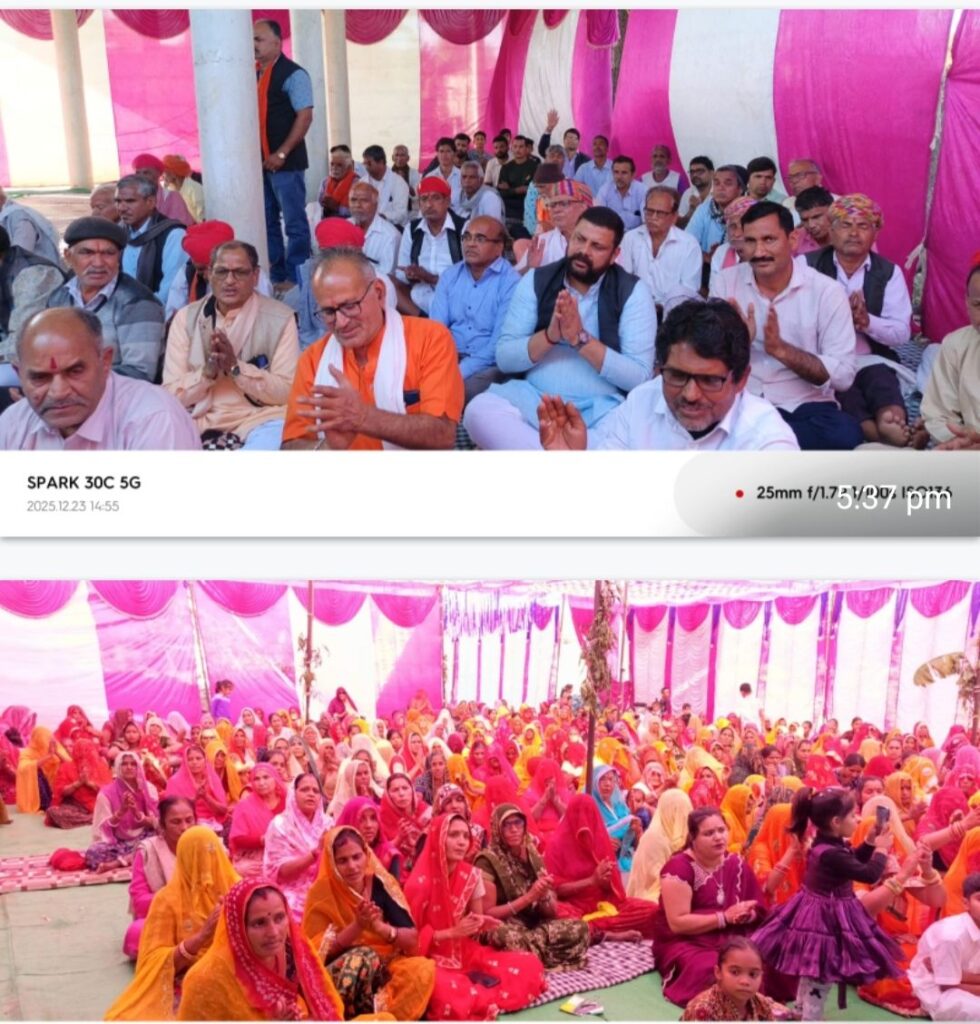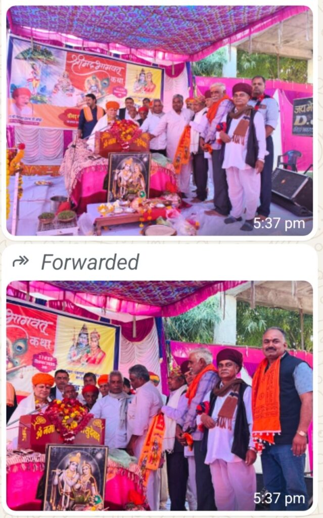तत्पश्चात श्रीमद् भागवत जी की पोथी एवं गुरुदेव रथयात्रा के साथ गांव के मुख्य मार्गों से गुजरती हुई हनुमानजी मंदिर, माता जी मंदिर, राधाकृष्ण मंदिर एवं चारभुजा जी मंदिर होते हुए गांव के प्रमुख रिंग मार्गों से होते हुए गंतव्य पर पहुंची, तत्पश्चात पधारे हुए तमाम मेहमानों के साथ पूरी ग्राम पंचायत के महाप्रसाद का आयोजन हुआ जिसमें सभी ने भोजन प्रसाद लिया ।
