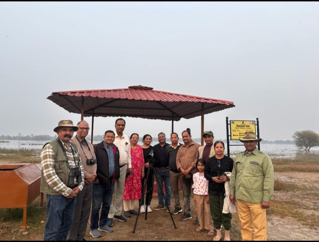 उदयपुर ,(कन्हैया लाल मेनारिया बासड़ा)!प्रतिवर्ष 02 फरवरी को विश्व आर्द्रभूमि दिवस मनाया जाता है। और हर वर्ष एक विशेष थीम को अपनाया जाता है। इस वर्ष विश्व आर्द्रभूमि दिवस थीम है “आर्द्रभूमि और पारंपरिक ज्ञान: सांस्कृतिक विरासत का उत्सव मनाना”। इसी के तहत विश्व आर्द्रभूमि दिवस की पूर्व संध्या पर ग्रीन पीपल सोसाइटी उदयपुर के सदस्यों का मेनार रामसर स्थल का भ्रमण किया गया। सेवानिवृत सीसीएफ एवं ग्रीन पीपल सोसाइटी के अध्यक्ष राहुल भटनागर ने बताया कि मेवाड़ क्षेत्र में मेनार के जलाशयों का इको सिस्टम अद्भुत है, और इसी कारण वर्षों से यहाँ प्रवासी और स्थानिक पक्षी आश्रय प्राप्त करते रहे हैं। इन तालाबों के संरक्षण में यहाँ के निवासियों के पारंपरिक प्रयास अनुकरणीय हैं। ग्रीन पीपल सोसाइटी ऐसे ही प्रयासों को आगे बढ़ाने के ध्येय से आगे बढ़ रही है। सेवानिवृत acf डॉ सतीश शर्मा ने बताया कि आपसी प्रतियोगिता को कम करने के लिए पक्षी प्राकृतिक नियमों से बंधे होकर जलाशय के विभिन्न गहराइयों में तथा सूक्ष्म आवासो में भोजन ग्रहण करते हैं जिससे उनकी जैविक गतिविधिया सामान्य बनी रहती है। ग्रीन पीपल सोसाइटी के सदस्यों एवं स्थानीय पक्षी मित्रों ने ढंढ तालाब व्यू पॉइंट पर वेटलैंड के महत्त्व और संरक्षण की चुनौतियों की चर्चा की. स्थानीय पक्षी मित्र दर्शन मेनारिया ने बताया क़ि मेनार रामसर स्थल क्षेत्र में सोमवार को महात्मा गाँधी राजकीय विद्यालय खेरोदा के विद्यार्थियों द्वारा वेटलैंड विजिट के साथ विभिन्न प्रतियोगिताएं व क्लीनलिनेस ड्राइव का आयोजन किया जायेगा। इस दौरान ग्रीन पीपल सोसाइटी अध्यक्ष राहुल भटनागर,डॉ बाशोबी,शरद श्रीवास्तव,डॉ निधि श्रीवास्तव,इंद्रजीत माथुर, डॉ सतीश शर्मा, प्रताप सिंह चुण्डावत, एस के वशिष्ठ, शर्मीला वशिष्ठ,डब्ल्यूडब्ल्यूएफ के अरुण सोनी, पक्षी मित्र चेतन मेनारिया,कीर्ति मेनारिया उपस्थित थे। भ्रमण के दौरान 40 से अधिक हवासिल,कॉमनक्रेन, ब्लैक नेक्ड स्टॉर्क, नोर्दन शोवलर,नोर्दन पिन्टेल, ग्रेटर स्पॉटेड ईगल,गड़वाल,मार्श हेरियर, व्हिस्कर्ड टर्न सहित 60 से अधिक प्रजातियां देखी।