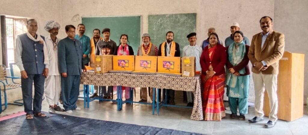 वल्लभनगर,(कन्हैया लाल मेनारिया बासड़ा)!निकटवर्ती राजकीय उच्च प्राथमिक विद्यालय लक्ष्मणपुरा ( मजावड़ा ) में आज आईडीबीआई बैंक कि मोडी शाखा के द्वारा तीन कंप्यूटर सेट भेंट किए गए। इस अवसर पर विद्यालय परिवार द्वारा सम्मान समारोह का आयोजित किया गया । जिसमें विद्यालय परिवार की ओर से समस्त बैंक के स्टाफ का धन्यवाद एवं आभार प्रकट किया गया। प्रधानाध्यापक सत्यनारायण चौबीसा ने बताया कि गांव के विजेंद्र सिंह सारंगदेवोत ने प्रेरक की भूमिका निभाई । विद्यालय में खराब पड़े कंप्यूटर के कारण कार्यालय कार्य एवं कंप्यूटर कक्ष में आ रही परेशानियों के बारे में जब उनको विद्यालय प्रबंधन द्वारा अवगत कराया गया तो विजेंद्र सिंह ने आईडीबीआई मोडी शाखा के शाखा प्रबंधक हरीश पालीवाल से विद्यालय में एक कंप्यूटर देने का अनुरोध किया, जिस पर हरीश पालीवाल व बैंक स्टाफ ने नियमानुसार प्रस्ताव लेकर तीन कंप्यूटर स्वीकृत किए ताकि विद्यालय का कार्य एवं बच्चों को कंप्यूटर शिक्षा में आ रही दिक्कत को दूर किया जा सके । आज शनिवार को बैंक अधिकारी कंप्यूटर लेकर विद्यालय पहुंचे और विद्यालय प्रबंधन को सुपुर्द किए । इस अवसर पर आयोजित स्वागत एवं धन्यवाद कार्यक्रम में मुख्य अतिथि आईडीबीआई बैंक मोडी शाखा के प्रबंधक हरीश पालीवाल ने कहा कि भविष्य में वाई फाई की सुविधा भी उपलब्ध करवाई जाएगी । कार्यक्रम की अध्यक्षता को ऑपरेटिव सोसाइटी के पूर्व चेयरमैन व गांव के प्रमुख समाजसेवी विजेंद्र सिंह सारंगदेवोत ने की। विशिष्ट अतिथि बैंक कर्मी विकाश कुमार मीणा पुष्पेंद्र सिंह सारंगदेवोत,मजावड़ा सरपंच नानूराम गाडरी, पीईईओ मजावड़ा गुंजन शर्मा, हिंदुस्तान स्काउट एंड गाइड के संभाग आयुक्त गोपाल मेहता मेनारिया,