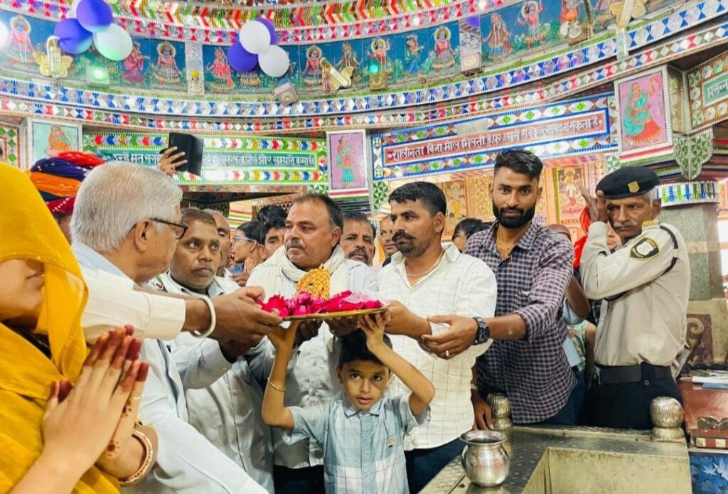 भीलवाड़ा ( जय प्रकाश शर्मा)!बनेडा उपखण्ड सर्किल के खेडलिया ग्राम पंचायत के गणेशपुरा ग्राम निवासी श्रद्धालु रविवार को अपनी मनोकामना पूर्ण होने पर सिंगोली श्याम को लगभग 12 लाख की लागत से निर्मित सोने का मुकुट चढ़ाया गया