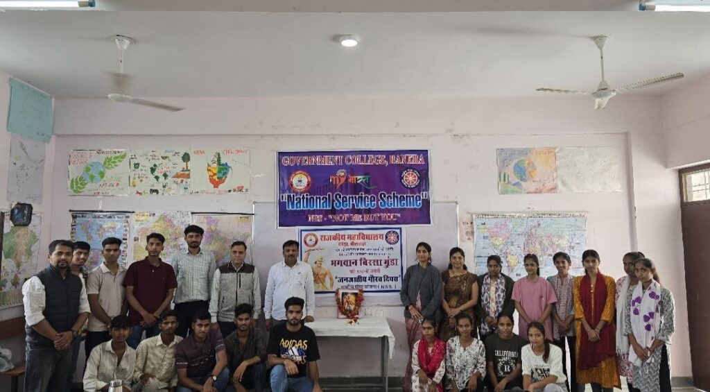 भीलवाड़ा ( जय प्रकाश शर्मा)!बनेड़ा उपखण्ड मुख्यालय स्थित राजकीय महाविद्यालय में राष्ट्रीय सेवा योजना के तत्वावधान में भगवान बिरसा मुंडा की 150वीं जयंती के उपलक्ष्य में मंगलवार को जनजातीय गौरव दिवस के रूप में एक विशेष कार्यक्रम का आयोजन किया गया।