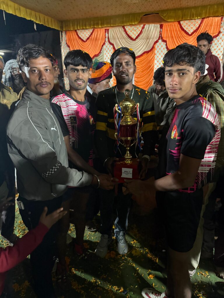 आयोजन कमेटी के केलाश गुर्जर ने बताया कि खातनखेडी गांव में दुधिया रोशनी में आयोजित प्रो कबड्डी लीग प्रतियोगिता में स्थानीय छह टीमों ने भाग लिया । रविवार रात्रि को फाइनल मुकाबला खातनखेडी थलाईबाज और खातनखेडी दंबग के बिच खेला गया। रोमाचक मुकाबले में खातनखेडी थलाईबाज ने आठ पोईंट से जीता। समापन समारोह में मुख्य अतिथि के रूप हिन्दू भोज सेना अध्यक्ष गोपाल गुर्जर व आयोजक केलाश गुर्जर द्वारा विजेता टीम खातनखेडी थलाईबाज को पारितौषिक के रूप में ग्यारह हजार रुपये नकद तथा ट्राफी तथा उप विजेता खातनखेडी दंबग को 5100 सौ रुपये नकद और ट्राफी प्रदान करके के सम्मानित किया गया। इस दौरान विशिष्ट अतिथि के रूप में पुर्व सरपच प्रहलाद बैरवा मिठु लाल गुर्जर बाबु खां मुन्ना खा हुसैन खा सांवर गुर्जर महेंद्र जाट रामस्वरूप गुर्जर सहित अन्य जने उपस्थित थे ।इससे पुर्व आयोजन समिति की ओर से सभी अतिथियों का माल्यार्पण और साफा बंधवाकर के स्वागत किया गया।