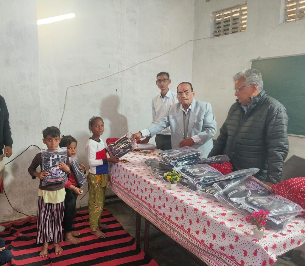 भीलवाड़ा (जय प्रकाश शर्मा)!बनेडा उपखण्ड क्षेत्र के लापिया गांव स्थित देवनारायण शिक्षण संस्थान में बुधवार को कंचनबाई पुरुषोत्तम जोशी ट्रस्ट बनेड़ा के अध्यक्ष एवं भामाशाह इंजीनियर शंभुलाल जी जोशी द्वारा देवनारायण शिक्षण संस्थान के छात्र-छात्राओं को ऊनी स्वेटर का वितरण किया गया। वहीं, संस्थान के छात्र-छात्राओं को शिक्षण सामग्री तथा संस्थान को आवश्यक बिजली उपकरण तथा संस्थान को 12000 वार्षिक किराया राशि भेंट की गई तथा भविष्य में ट्रस्ट द्वारा और भी सहयोग जारी रहेगा |। कार्यक्रम में इंजीनियर शंभूलाल जोशी, लापिया के पूर्व वैद्य चिकित्सक जगदीश चंद्र जांगिड़, संस्था संचालक नारायण लाल गाडरी और समाजसेवी प्रकाश जांगिड़ तथा प्रभु लाल गाडरी उपस्थित थे।देवनारायण शिक्षण संस्थान के संचालक नारायण लाल गाडरी द्वारा ट्रस्ट के अध्यक्ष का माल्यार्पण व साफा बंधाकर आभार व्यक्त किया !