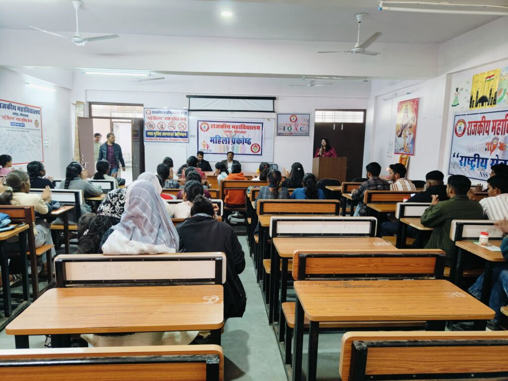 कार्यक्रम का प्रारंभ मां सरस्वती के समक्ष दीप प्रज्वलन के साथ हुआ।कार्यक्रम के संरक्षक प्राचार्य प्रो. (डॉ.) कन्हैया लाल मीणा ने बताया कि जब आप नियमित रूप से योग का अभ्यास करते हैं, तो आपका मन आपके शरीर के साथ मिलकर काम करने लगता है। इससे गतिशीलता और सुडौलता बढ़ती है। अतः सभी नियमित योगाभ्यास करें।विशिष्ट अतिथि के रूप में डॉ. सरफराज अली खान, चिकित्सा अधिकारी राजकीय आयुर्वेदिक चिकित्सालय उपस्थित हुए। जिनके निर्देशन में नेत्र जांच तथा रक्त जांच शिविर में महाविद्यालय के लगभग 100 विद्यार्थी लाभान्वित हुए। योग प्रशिक्षक कमलेश कुमार सैनी द्वारा समस्त विद्यार्थियों तथा स्टाफ सदस्यों को योगाभ्यास करवाया। मुख्य वार्ताकार के रूप में माणिक्य लाल वर्मा राजकीय महाविद्यालय भीलवाड़ा से सह आचार्य डॉ. सुमन मीणा उपस्थित हुई तथा इन्होंने अपनी वार्ता में छात्राओं को महिला सुरक्षा हेतु कार्यरत अनेक संस्थाओं की जानकारी प्रदान की तथा अपने अधिकारों हेतु सदैव जागरूक रहने हेतु प्रेरित किया। महिला प्रकोष्ठ प्रभारी ज्योति रानी रिठोदिया ने बताया कि महिलाएं सबसे पहले स्वयं ही स्वयं की उन्नति हेतु सदैव तत्पर रहे। किसी भी प्रकार की समस्या को जरूर साझा करें क्योंकि समस्या अपने साथ सदैव समाधान लाती है। कार्यक्रम सहप्रभारी मीनाक्षी शर्मा ने भी छात्राओं को सशक्त बनने हेतु प्रेरित किया। उक्त कार्यक्रम में महाविद्यालय के संकाय सदस्य डॉ. सिद्धार्थ कुमार देसाई, सीताराम, शिवराज गोठवाल, अमृतलाल जीनगर, राजकुमार मीणा आदि उपस्थित रहे।