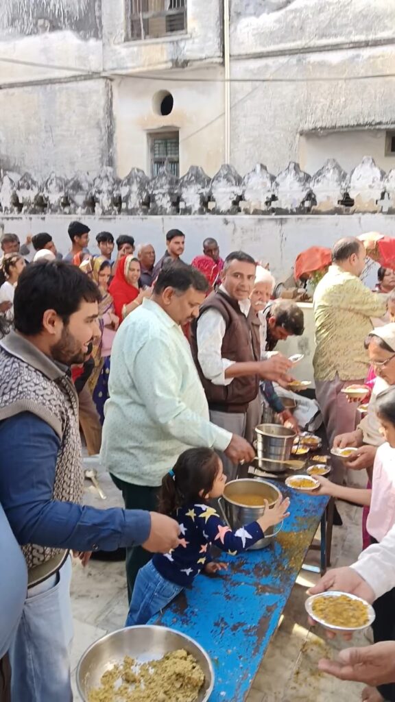 पंडित मुरलीधर पाराशर ने बताया कि पोष माह के अवसर भक्तजनों द्वारा प्रातः 8 से दोपहर 12 बजे तक भजन कीर्तन किया गया। राधे रानी के भजनों की धुन पर झूम उठे भगत एवं दोपहर 12:15 महा आरती के पश्चात दाल – ढोकले का भोग लगाने के पश्चात एवं भक्तों में दाल ढोकले के प्रसाद का वितरण किया गया।