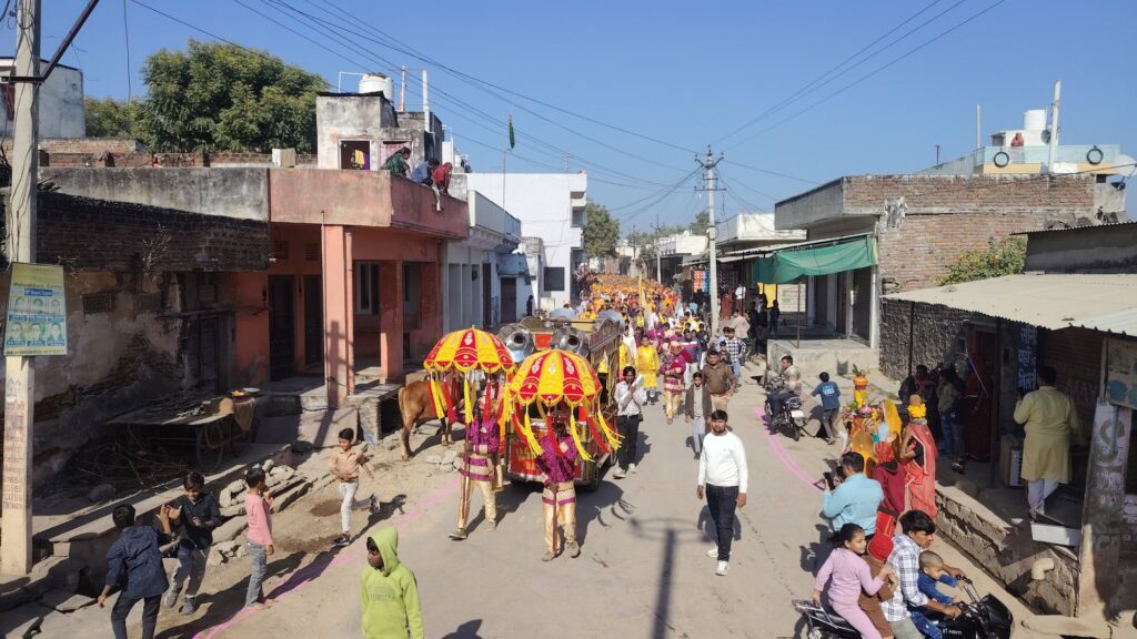आस पास गावों से पहुचे लोग – कलश यात्रा में भाग लेने के लिए बबराणा आमली महुआखुर्द सहित अन्य गावों से महिला पुरूष बसों आदि संसाधनों से पहुचे।