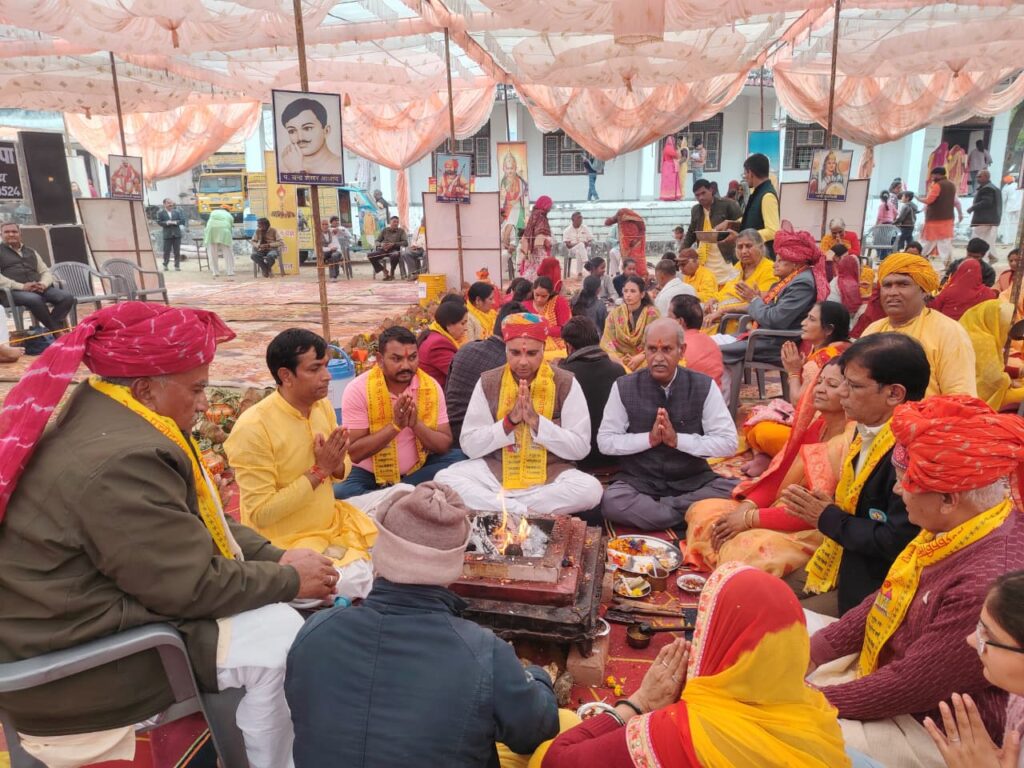 गायत्री महायज्ञ के अंतिम दिन बुधवार को पूर्णाहुति यज्ञ में करीब 1100 यजमानों द्वारा घर परिवार, राष्ट्र की सुख समृद्धि और लोक मंगल के लिए विशेष आहुतियां देकर यज्ञ संपन्न किया। चार दिनों के इस आयोजन में गायत्री परिवार द्वारा करीब 700 संस्कार जिनमे गुरुदीक्षा, पुंसवन संस्कार, अन्नप्रासन संस्कार, यज्ञोपवित संस्कार, विद्यारम्भ संस्कार, जन्मदिन इत्यादि संस्कार संपन्न करवाए गए। समापन सत्र में शांतिकुंज हरिद्वार परमेश्वर लाल साहू की टोली का भावभीना सम्मान किया गया। इस अवसर पर विशिष्ट अतिथि ब्रह्मचारी महाराज,सुरेश चन्द्र अखिल भारतीय कार्यकारिणी सदस्य,मोहनलाल शर्मा सेवानिवृत्ति जिला कलेक्टर, शंकर लाल संघ प्रांत कार्यवाहक, हीरालाल टेलर पूर्व विभाग संघ चालक, कैलाश खोईवाल भीलवाड़ा महानगर संघचालक ,श्री मायाकांत त्रिपाठी क्रीड़ा भारती जिला अध्यक्ष, अतिरिक्त जिला कलेक्टर भीलवाड़ा रणजीत सिंह गोदारा , विजेंद्र सिंह (प्रधान प्रतिनिधि) ,प्रद्युम्न सिंह (सरपंच संघ) ,परमेश्वर पारीक रायला मंडल अध्यक्ष उपस्थित रहे।