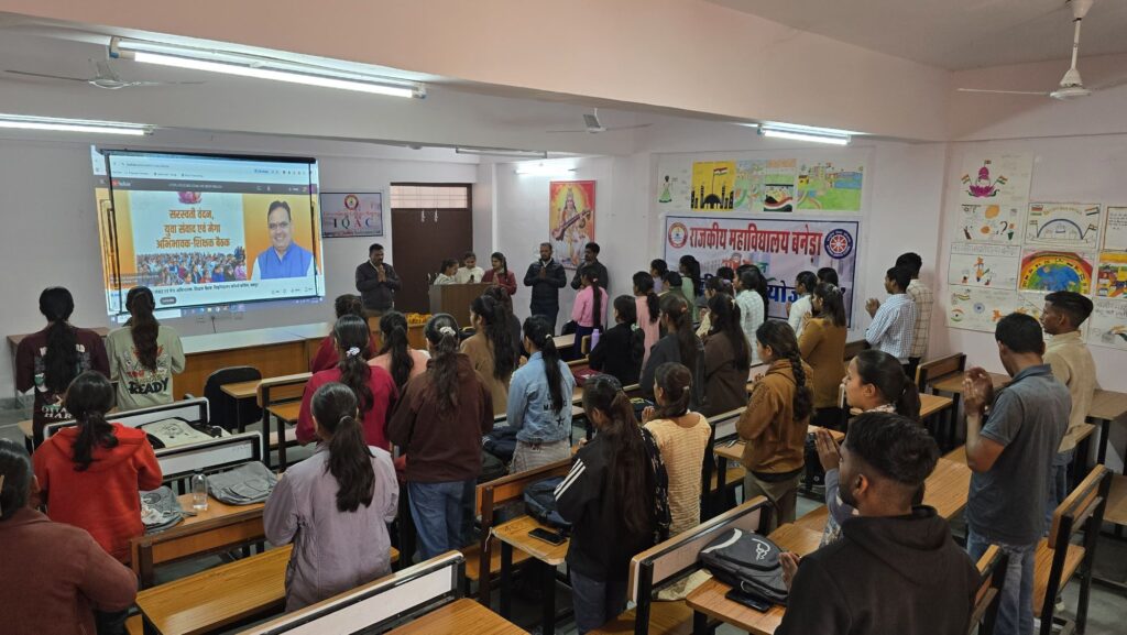 विशेष शिविर के प्रथम दिवस की शुरुआत प्रातः 09 बजे सरस्वती वंदना और स्वयंसेवकों के उत्साहपूर्ण संबोधन के साथ हुई। शिविर के प्रथम सत्र में स्वयंसेवकों द्वारा गोद लिए गए ग्राम मानपुरा में एक विशाल जागरूकता रैली निकाली गई। इस रैली का मुख्य उद्देश्य ग्रामीण क्षेत्र में व्याप्त सामाजिक कुरीतियों के प्रति जनमानस को सचेत करना और उनके निवारण के उपाय बताना था। स्वयंसेवकों ने ‘शिक्षा का उजियारा फैलाना है, कुरीतियों को मिटाना है’ जैसे नारों के साथ ग्रामीणों को शिक्षा के महत्व से अवगत कराया। रैली के माध्यम से बाल विवाह, नशा मुक्ति और स्वच्छता जैसे विषयों पर प्रभावी संदेश दिया गया। द्वितीय सत्र में आयोजित बौद्धिक चर्चा के दौरान स्वयंसेवकों को राज्य सरकार की विभिन्न जन कल्याणकारी योजनाओं के बारे में विस्तार से जानकारी दी गई। कार्यक्रम के वक्ताओं ने बताया कि किस प्रकार युवा इन योजनाओं का लाभ अंतिम छोर पर बैठे व्यक्ति तक पहुँचाने में एक सेतु का कार्य कर सकते हैं। स्वयंसेवकों को मुख्यमंत्री आयुष्मान योजना, पालनहार योजना और अन्य छात्रवृत्ति योजनाओं के क्रियान्वयन की प्रक्रिया समझाई गई। आज के कार्यक्रम का मुख्य आकर्षण माननीय मुख्यमंत्री महोदय की अध्यक्षता में आयोजित ‘राज्य स्तरीय निपुण मेला’ रहा। महाविद्यालय परिसर में इस मेले की लाइव स्ट्रीमिंग की व्यवस्था की गई, जिसे महाविद्यालय के समस्त विद्यार्थियों और एनएसएस स्वयंसेवकों ने एकाग्रता के साथ देखा। इस कार्यक्रम के माध्यम से विद्यार्थियों को शिक्षा के क्षेत्र में हो रहे नवाचारों और कौशल विकास की बारीकियों को समझने का अवसर मिला। कार्यक्रम के अंत में सभी विद्यार्थियों, प्राध्यापकों और स्वयंसेवकों द्वारा सामूहिक रूप से ‘वंदेमातरम’ का गान किया गया। देशभक्ति के इस स्वर ने पूरे परिसर को ऊर्जा और राष्ट्रप्रेम की भावना से सराबोर कर दिया।महाविद्यालय के प्राचार्य प्रो. डॉ. के.एल. मीणा ने अपने संबोधन में कहा कि इस प्रकार के शिविर विद्यार्थियों के व्यक्तित्व निर्माण और सामाजिक उत्तरदायित्व की भावना विकसित करने में मील का पत्थर साबित होते हैं। कार्यक्रम का सफल संचालन कार्यक्रम प्रभारी डॉ. सिद्धार्थ कुमार देसाई द्वारा किया गया। उन्होंने शिविर की आगामी रूपरेखा प्रस्तुत करते हुए स्वयंसेवकों को सेवा के संकल्प के साथ आगे बढ़ने के लिए प्रेरित किया।