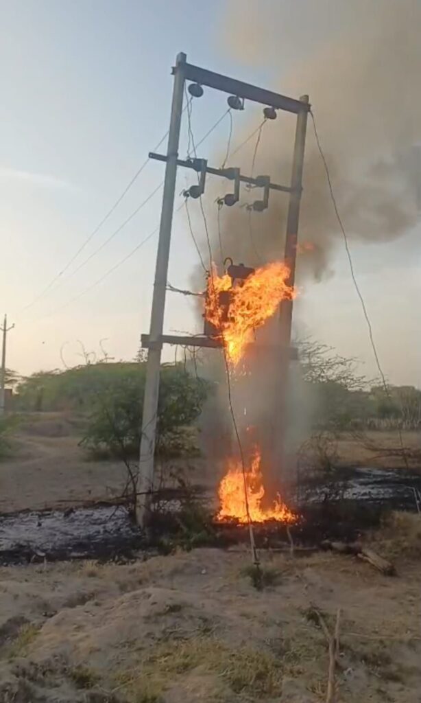 पुर्व सरपंच प्रहलाद बैरवा ने बताया कि खातनखेडी गांव में रहने वाले गोपी बैरवा के खेत पर लगा ट्रांसफार्मर शुक्रवार को शोर्ट सर्किट के चलते धू धू कर के जलने लगा। जिससे निकली चिंगारी के कारण खेत बाड ने आग पकड ली। साथ ही खेत पर मोजूद लोगों की सतर्कता से खेत में खडी गेहु की फसल बच गई। बाड मे तेज गति से फैल रही। आग कि सुचना पर मौके पर पहुची दमकल की मदद से आग पर काबू पाया जा सका।