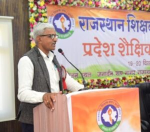 मावली/डबोक !राजस्थान शिक्षक संघ (प्रगतिशील) का दो दिवसीय राज्य स्तरीय शैक्षिक अधिवेशन शनिवार को राजस्थान विद्यापीठ, डबोक में संपन्न हुआ। अधिवेशन के अंतिम दिन ‘खुला अधिवेशन’ के दौरान शिक्षकों की ज्वलंत समस्याओं और सरकार की नीतियों पर तीखा प्रहार किया गया। मुख्य वक्ता एवं संगठन के संरक्षक व कांग्रेस नेता श्यामलाल आमेटा, सभा अध्यक्ष धुलीराम डांगी और प्रदेश अध्यक्ष नीरज शर्मा ने संयुक्त रूप से राज्य सरकार की नीतियों को कर्मचारी विरोधी बताया।