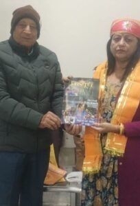 इसके साथ ही त्रिपाठी ने अलका पांडे को उदयपुर से प्रकाशित पारिवारिक सामाजिक पत्रिका का की प्रति भेंट कर उनका बहुमान किया।