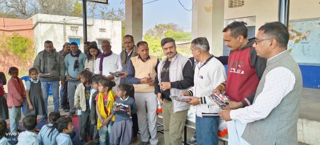 शिक्षक के प्रयासों से भामाशाहों ने फिर किए स्वेटर वितरित व भोजन प्रसादी