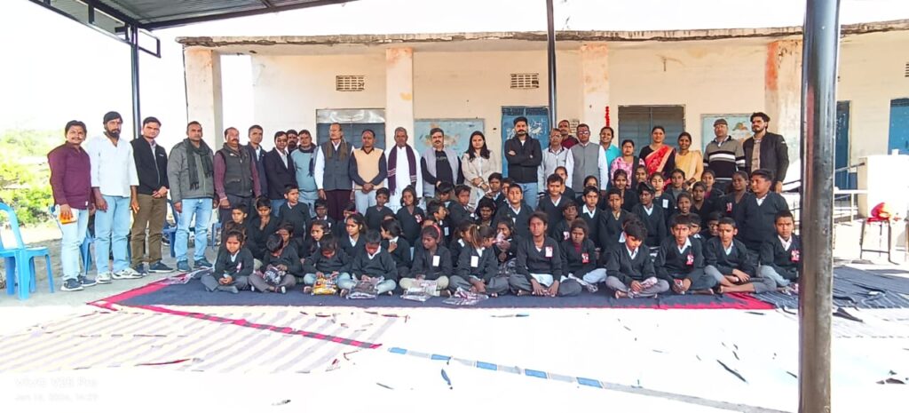 शिक्षक के प्रयासों से भामाशाहों ने फिर किए स्वेटर वितरित व भोजन प्रसादी