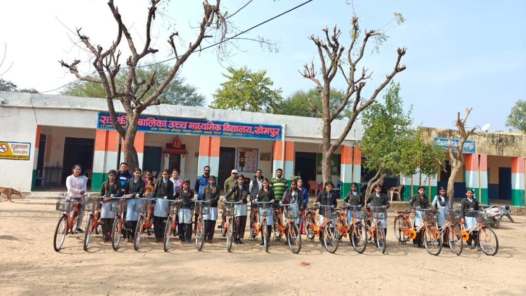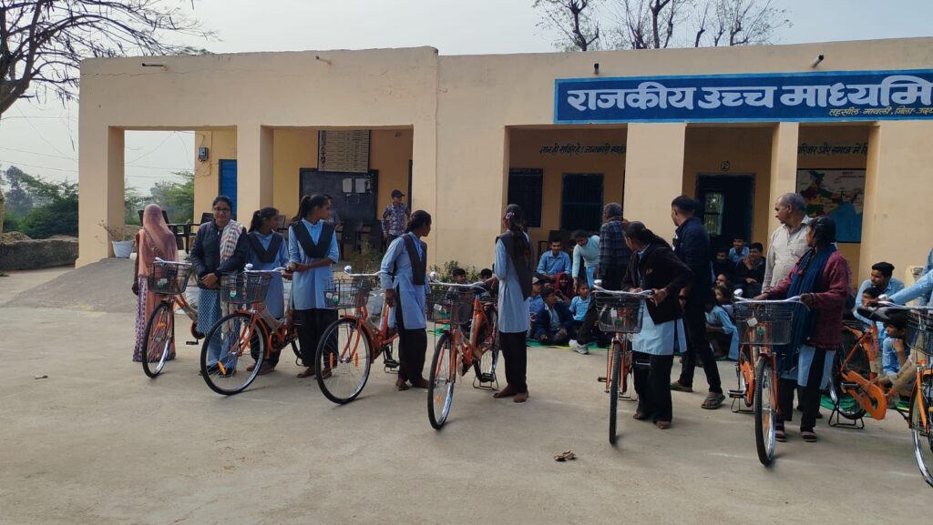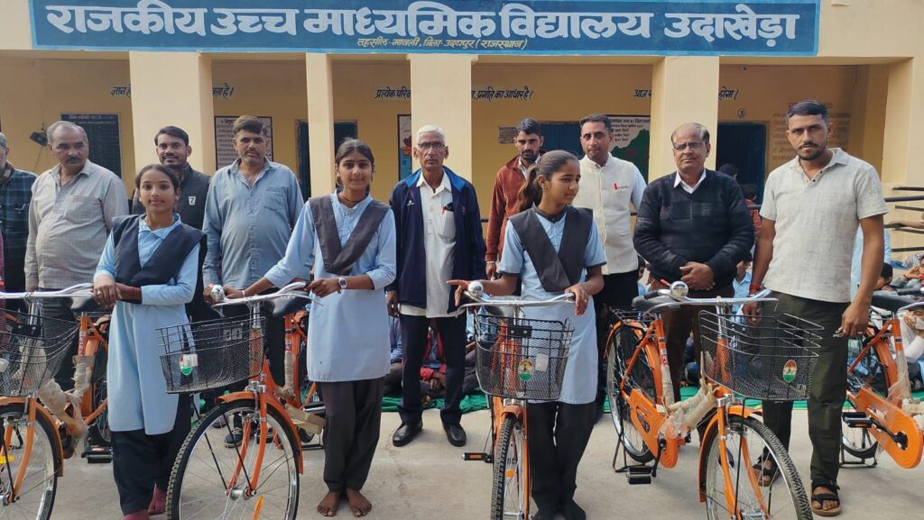 भीमल, खेमपुर, उदा खेड़ा, ढुढीयां , आमली, नूरड़ा, घासा, नाहरमंगरा के विद्यालयों में कक्षा-9 की बालिकाओं को गुरूवार को साईकिल वितरण की गई।