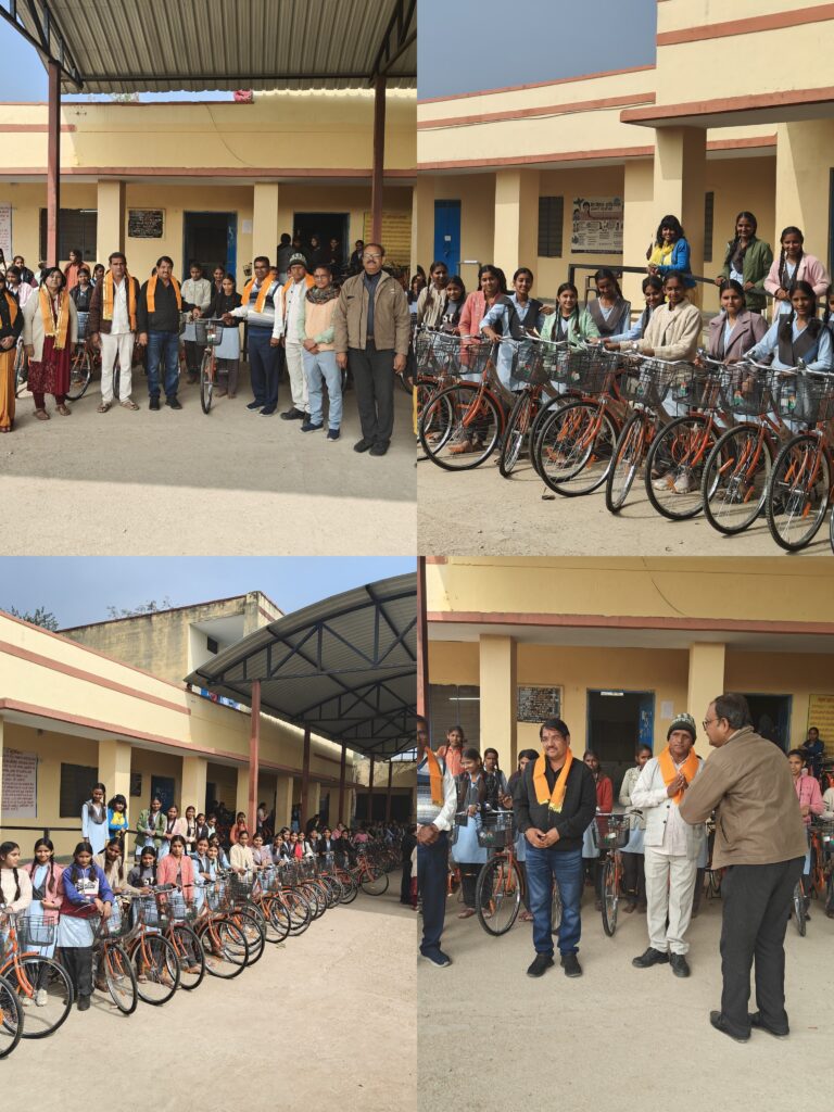 कक्षा 09 में अध्ययनरत बालिकाओं को अपने निवास स्थान से विद्यालय तक पहुँचने ! आने- जाने के लिए राज्य सरकार द्वारा साईकिल वितरण की जा रही है।