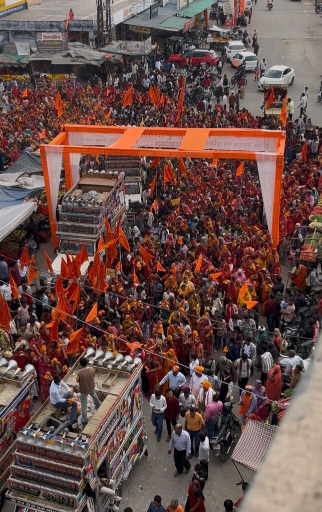 मुख्य चौराहे से धर्म सभा स्थल तक पुष्प वर्षा के साथ हिंदू-हिंदू भाई-भाई, दूसरी जाति कहां से आई! जात- पात की करो विदाई, हिंदू- हिंदू भाई-भाई के नारों के साथ सभा स्थल पर पहुंचे